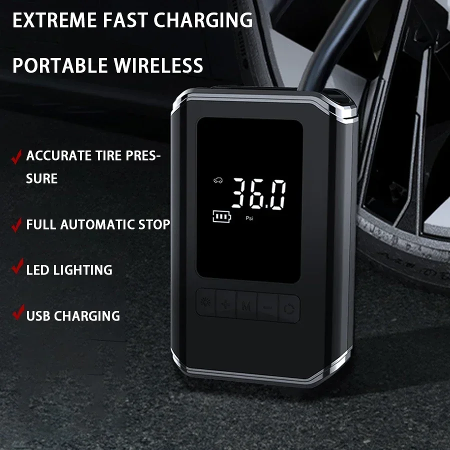 Car Mounted Inflation Pump Portable Mini Self-propelled Electric Tire Inflator Air Pump Handheld Wireless Charging