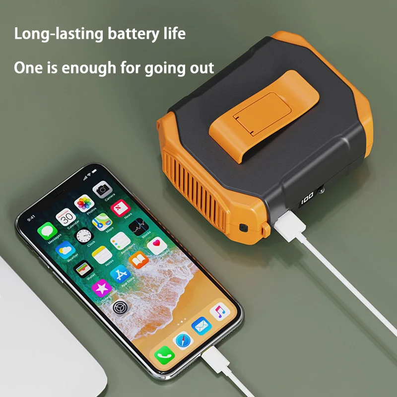 【Hands-free and Multifunctional Design】When used outdoors, you can wear the mini fan around your waist or hang it around your neck for a hands-free experience. Mini fan with Waist Clip, you can clip it around your waist to free your hands. Its lightweight design ensures comfort. Indoors, the personal fan can be placed on a table, thanks to its built-in stand.