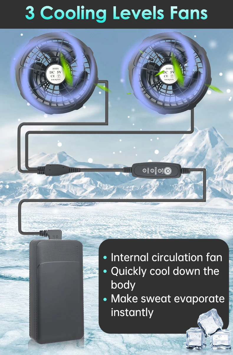 Product function : Cooling fans can cool the body and quickly evaporate sweat from the surface of the body.