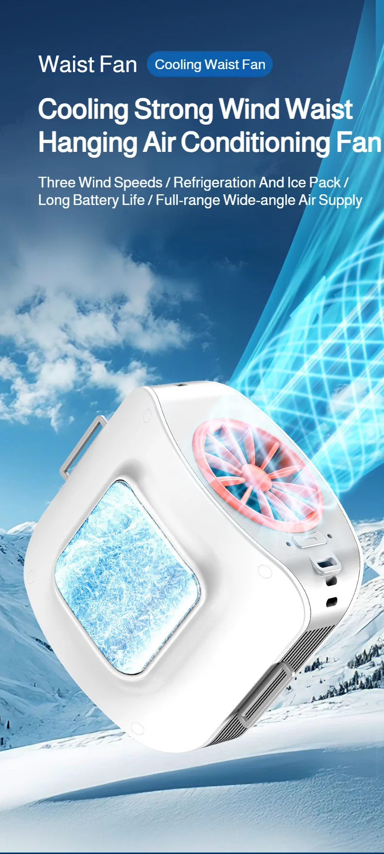 Waist hanging Cooling Fan High speed Ice Compress Air Conditioning Fa