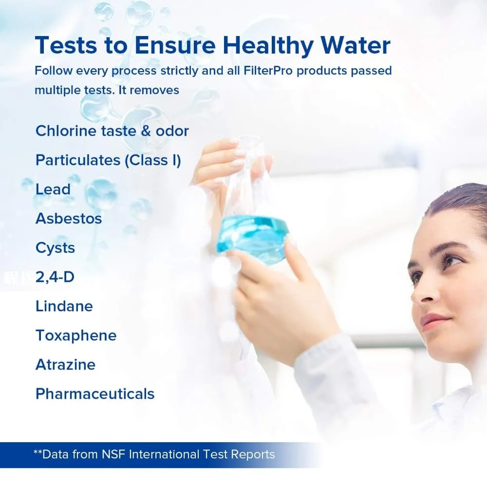 1. Comprehensive Filtration: Removes chlorine, lead, mercury, and other harmful contaminants. Reduces unpleasant tastes and odors.Filters out sediment, rust, and other particulate matter.