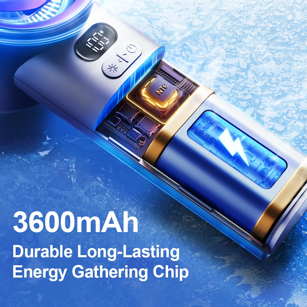 This fan is beyond your imagination. It has 100 speed settings to meet all your needs, and it has a cooling module in the middle to instantly cool your hot body!