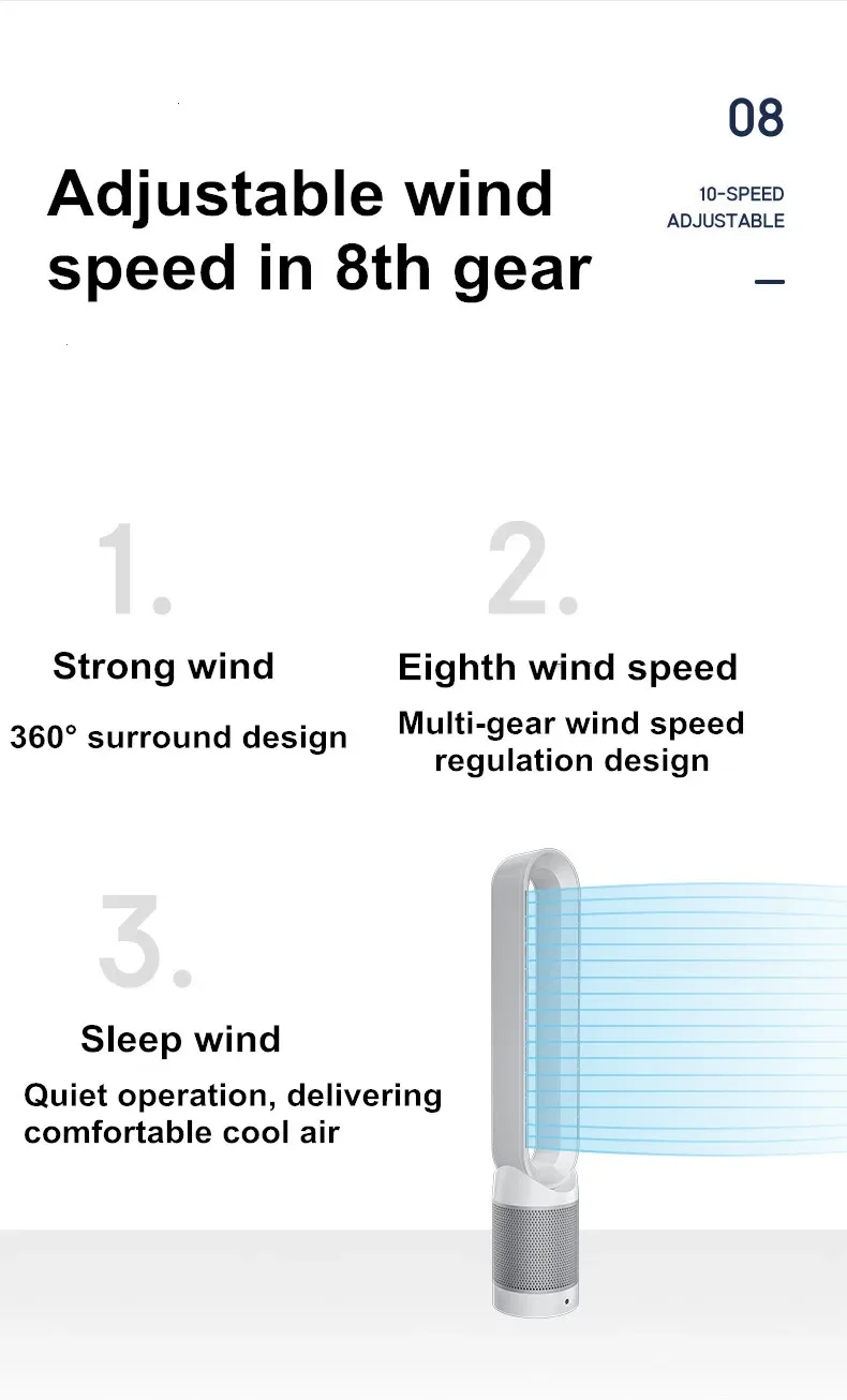 ZAOXI 220V Air Purification Circulation Bladeless Fan 42Inch Ultra Qui