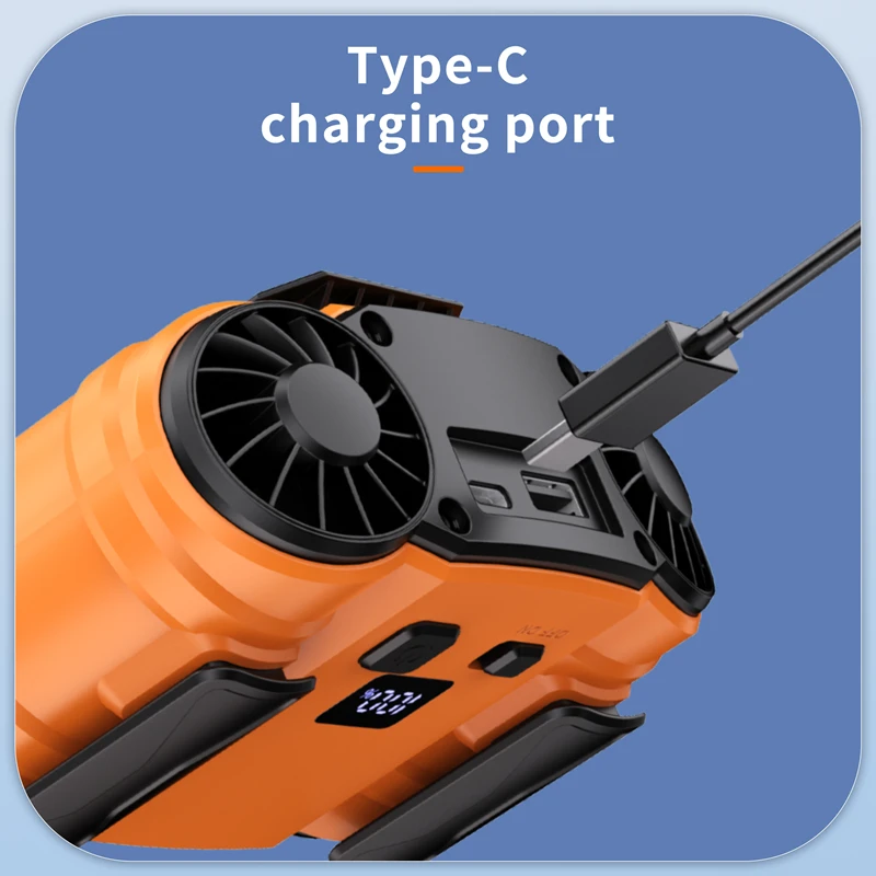 ✅ Dual 360° Adjustable Fans – Two ultra-quiet fans with 360° rotation provide wide-angle cooling from any direction.