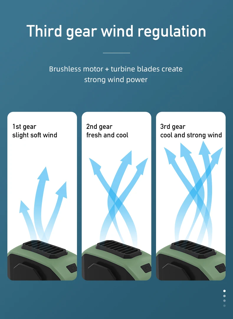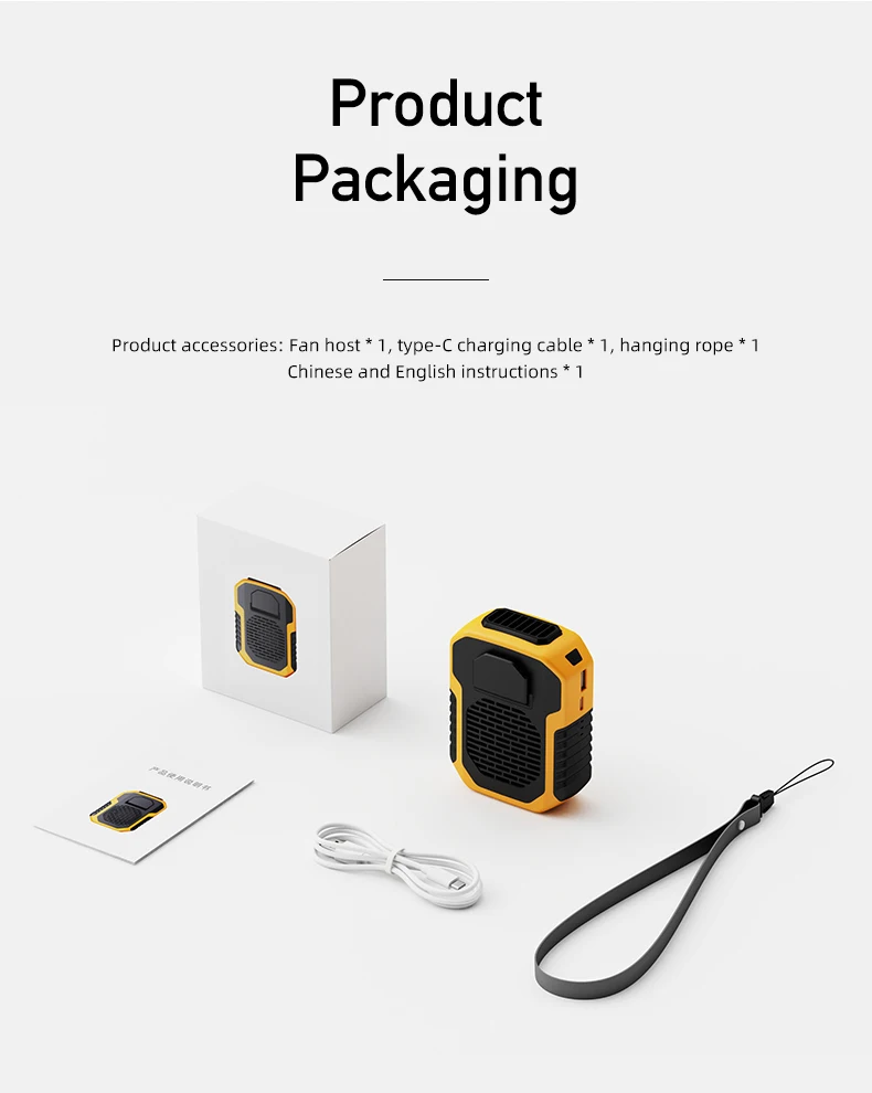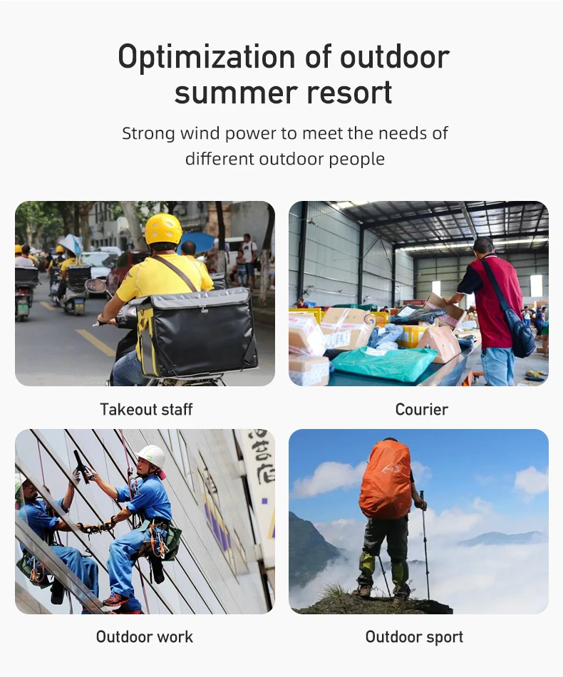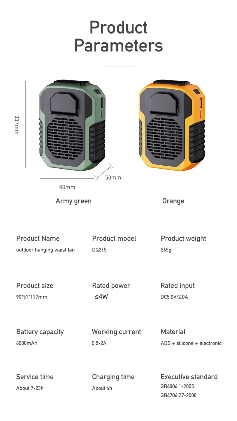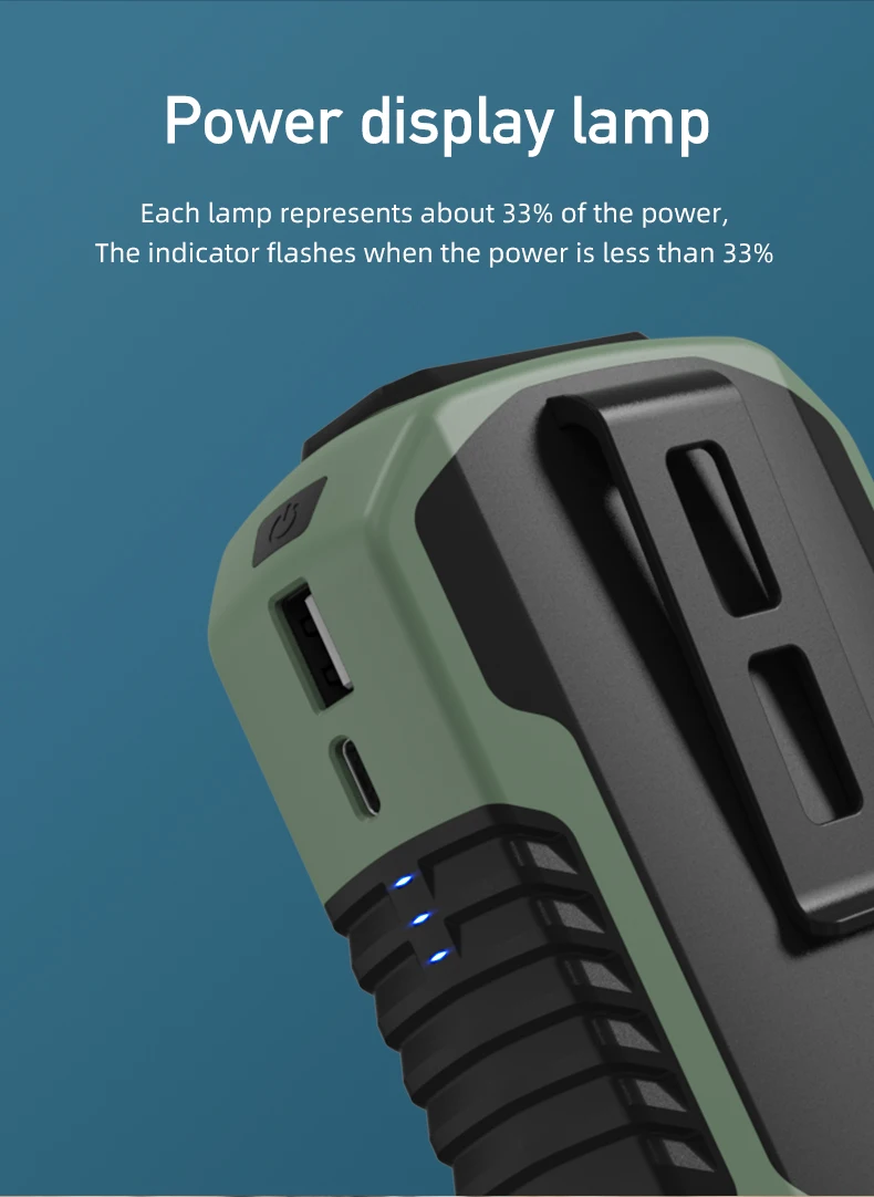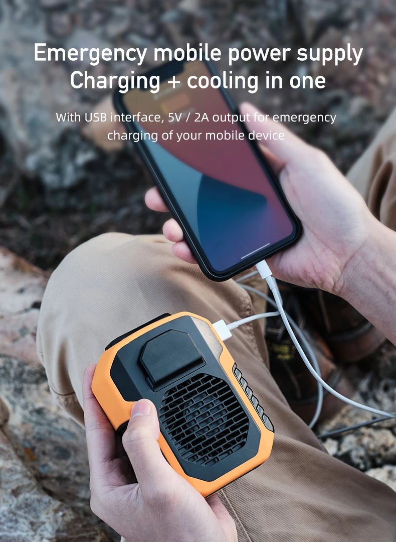 Function: Three wind speeds; Remaining power display (indicator on the side); Power bank