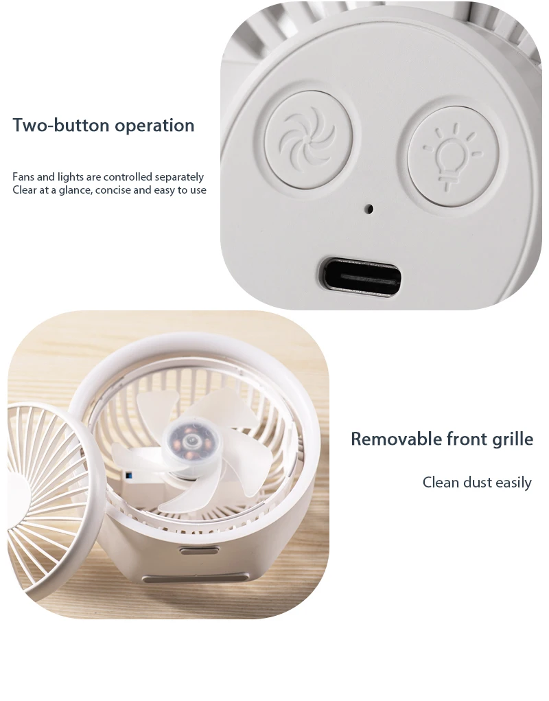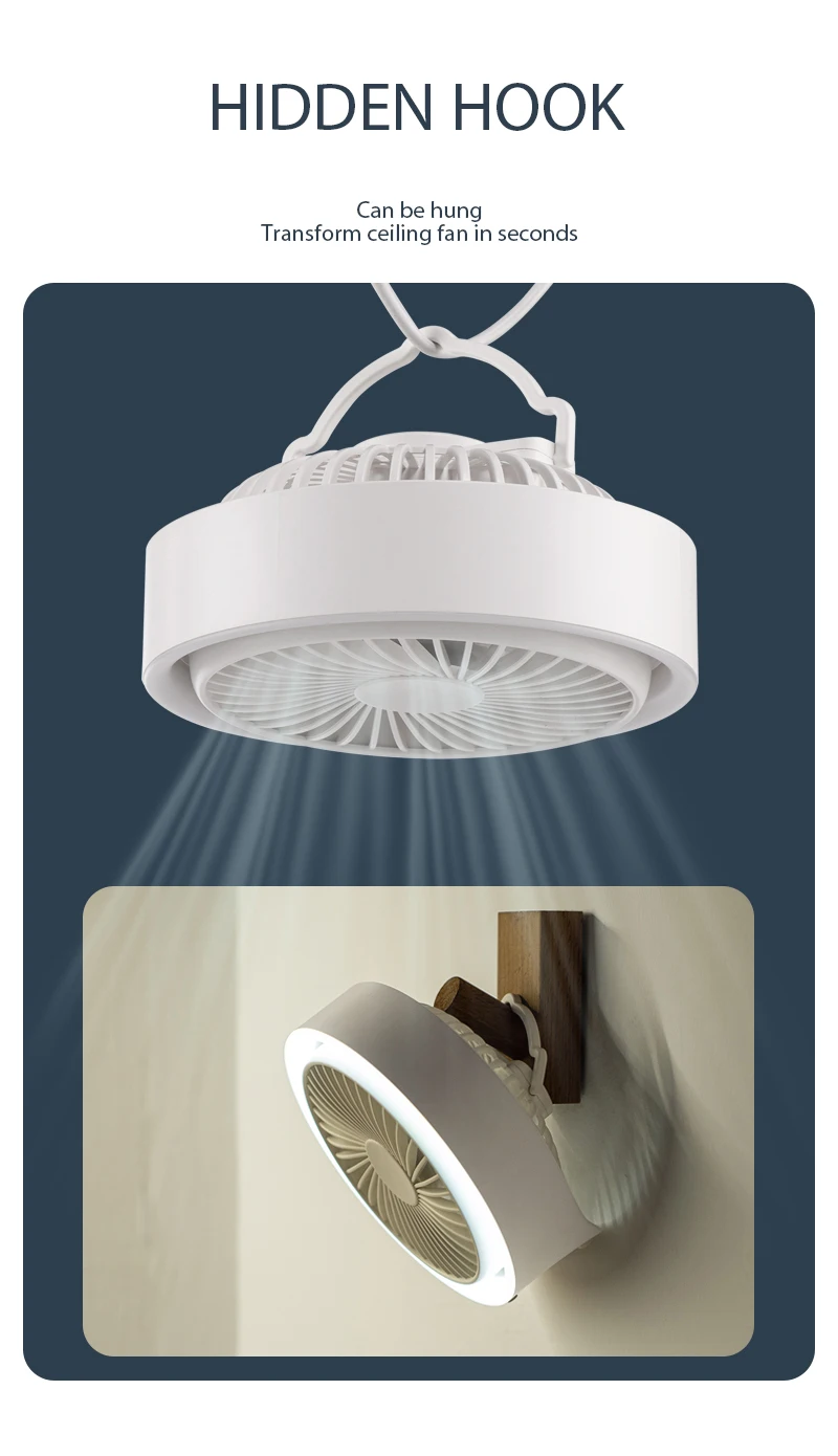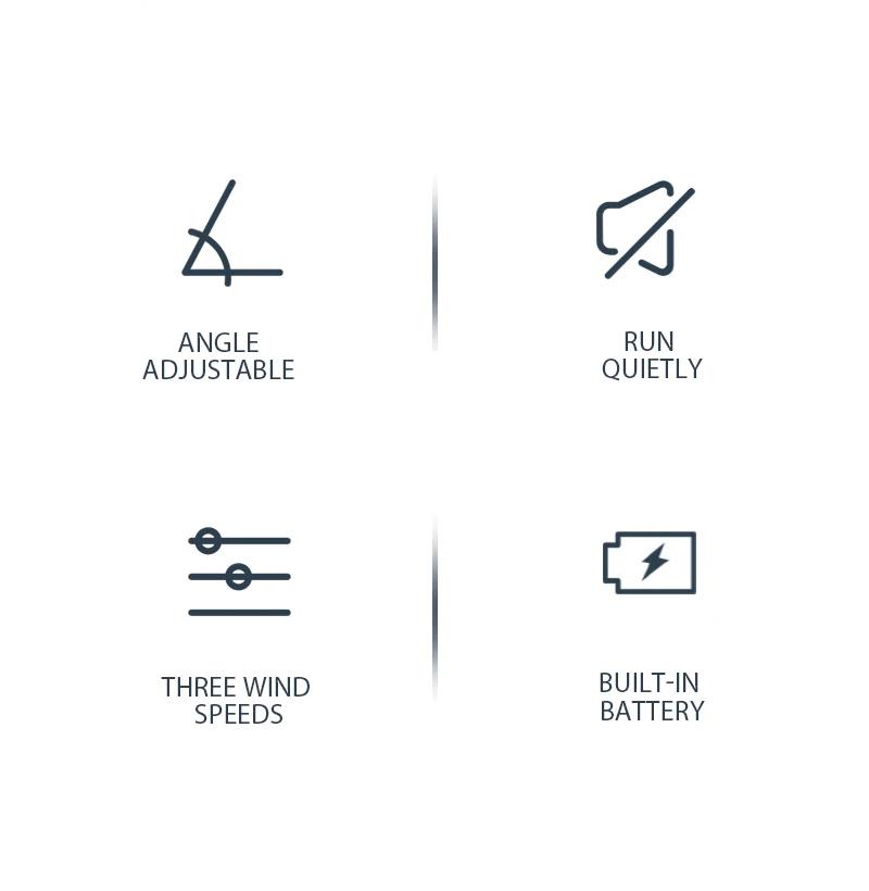 2、USB rechargeable battery: This fan has a USB charging port that can charge USB chargers, laptops, computers, power banks and other devices. Very quiet when in use