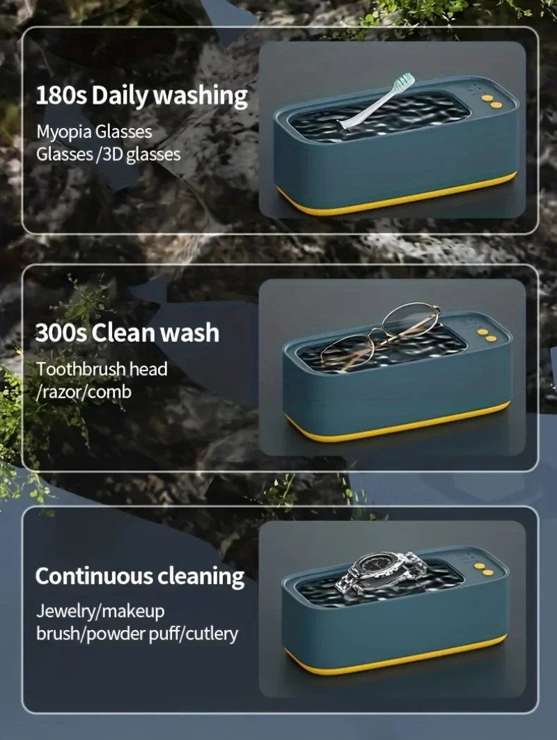 5. Wide Range of Applications : Our jewelry eyeglasses watches cleaner is suitable for cleaning a wide range of items, including braces, combs, razors, jewelry, pacifiers, makeup tools, pens, metal cutlery, watch straps, nail clippers, toothbrushes, glasses, and more.