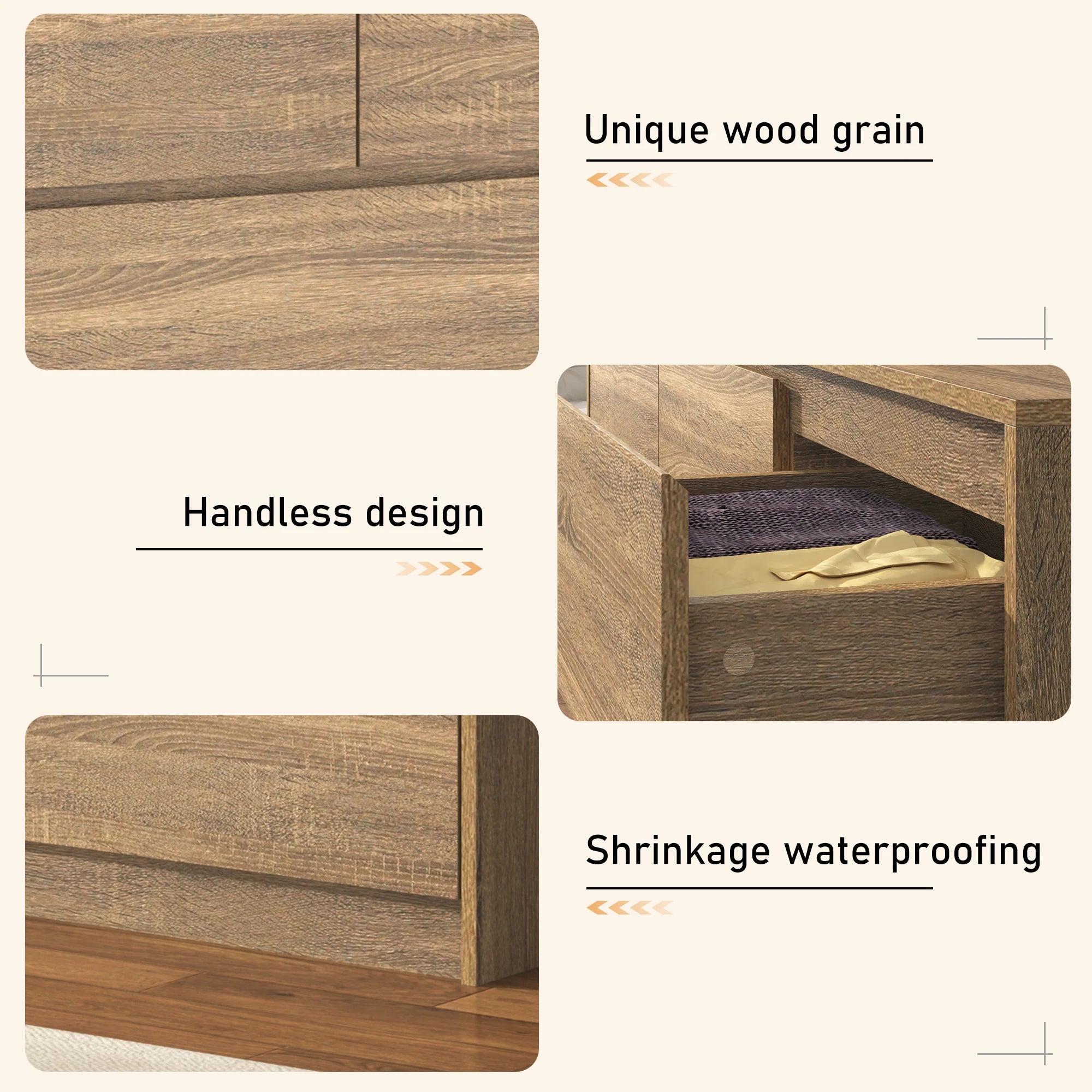 【Worry-Free Purchase】Each wooden board of the double dresser has been tested by professional personnel. At the same time, we are also equipped with detailed instructions and clear installation videos to ensure that the product can be delivered to you safely. If you have any questions, please feel free to contact us and we will help you as soon as possible