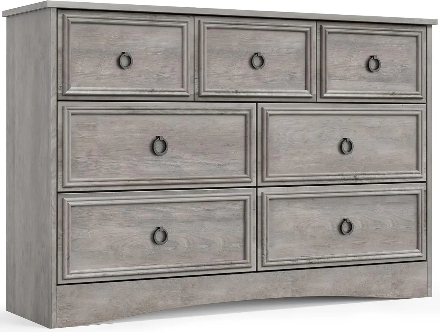Modern 7 Drawer Dresser, Dressers for Bedroom, Chest of Drawers Closet Organizers and Storage Clothes - Easy Pulls Handle, Textured Borders Living Room, Hallway, Gray