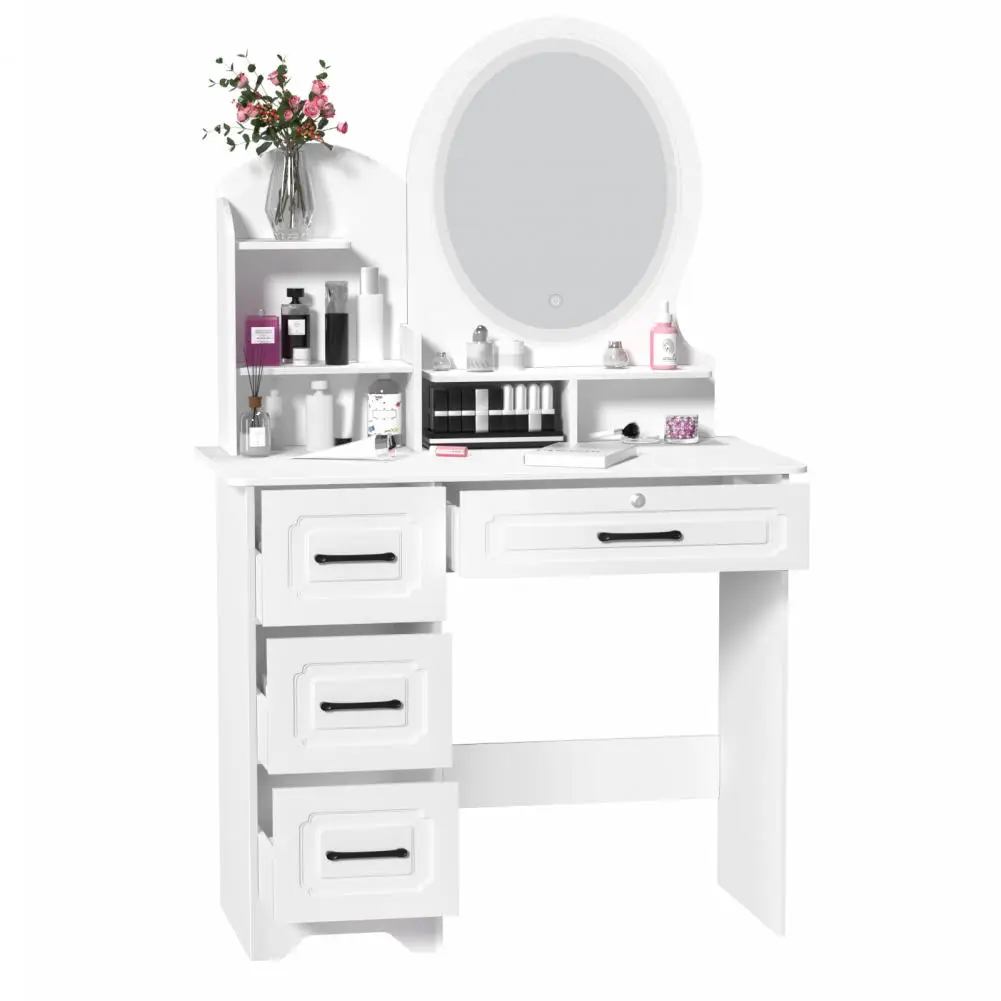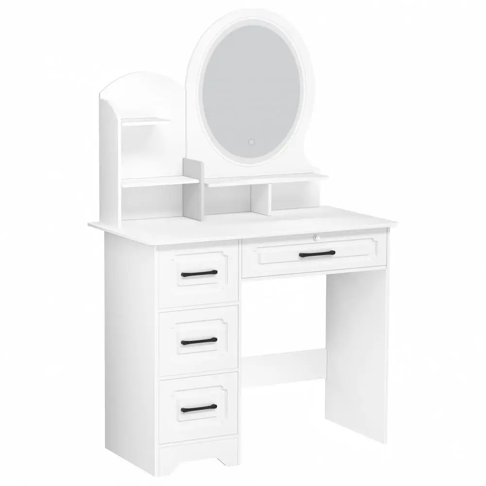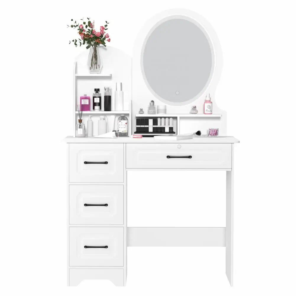 Stylish & Elegant Design: High quality vintage handles on four large drawers, elegant on storage shelves. All of the careful design in every detail make this white vanity desk more attractive in your bedroom, nice looking and functional. It suits any room decor and exudes sophistication no matter where it is placed in the room. So this lighted vanity table will be an ideal gift for yourself or your loved people on birthdays, Valentine's Day, Mother's Day, Christmas or other anniversaries.
