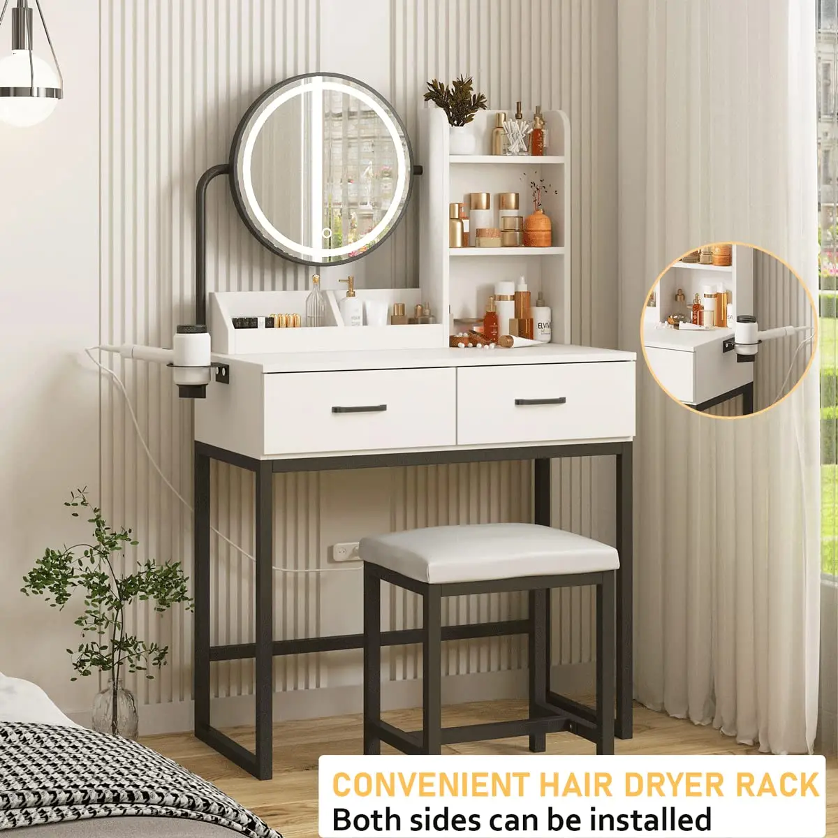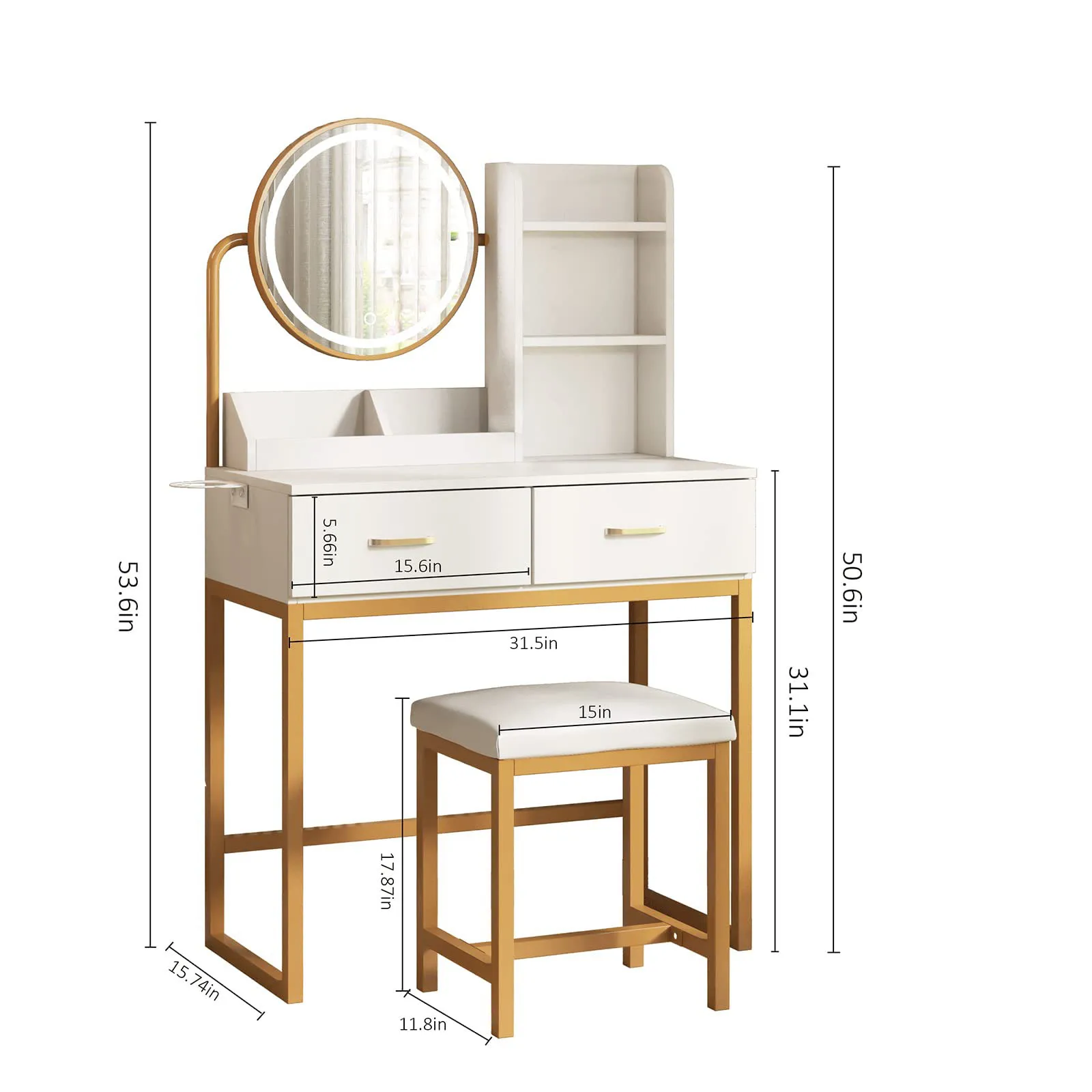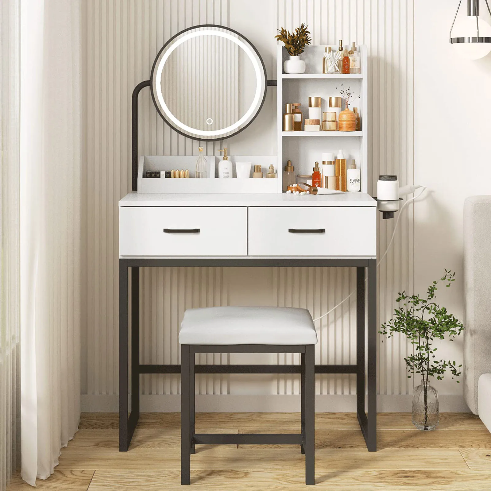 Makeup Vanity Desk with LED Lighted Round Mirror & Metal Legs