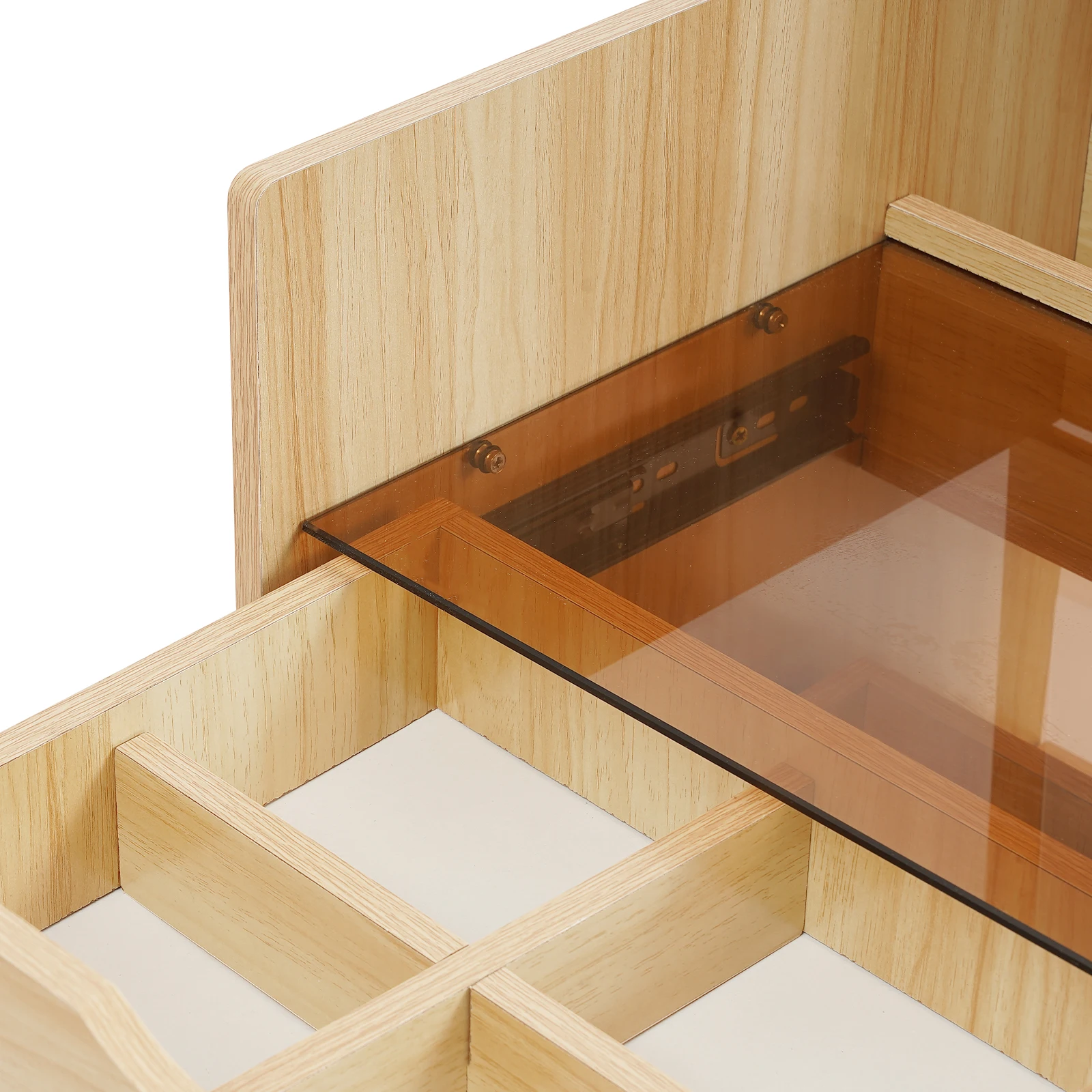Ample Storage Space: This product comes with two drawers and a stool with a large storage drawer. When you flip the top of the desk, there is one more hidden storage space for you. You can keep your daily cosmetics and makeup tools such as eye shadows, perfumes, and brushes organized for a tidy living space and a convenient makeup process.