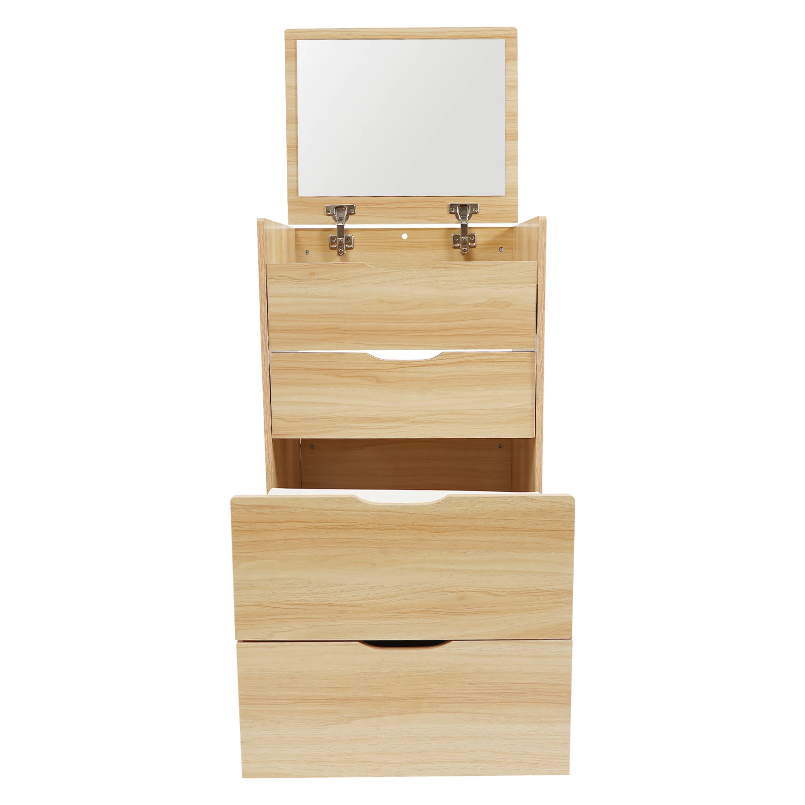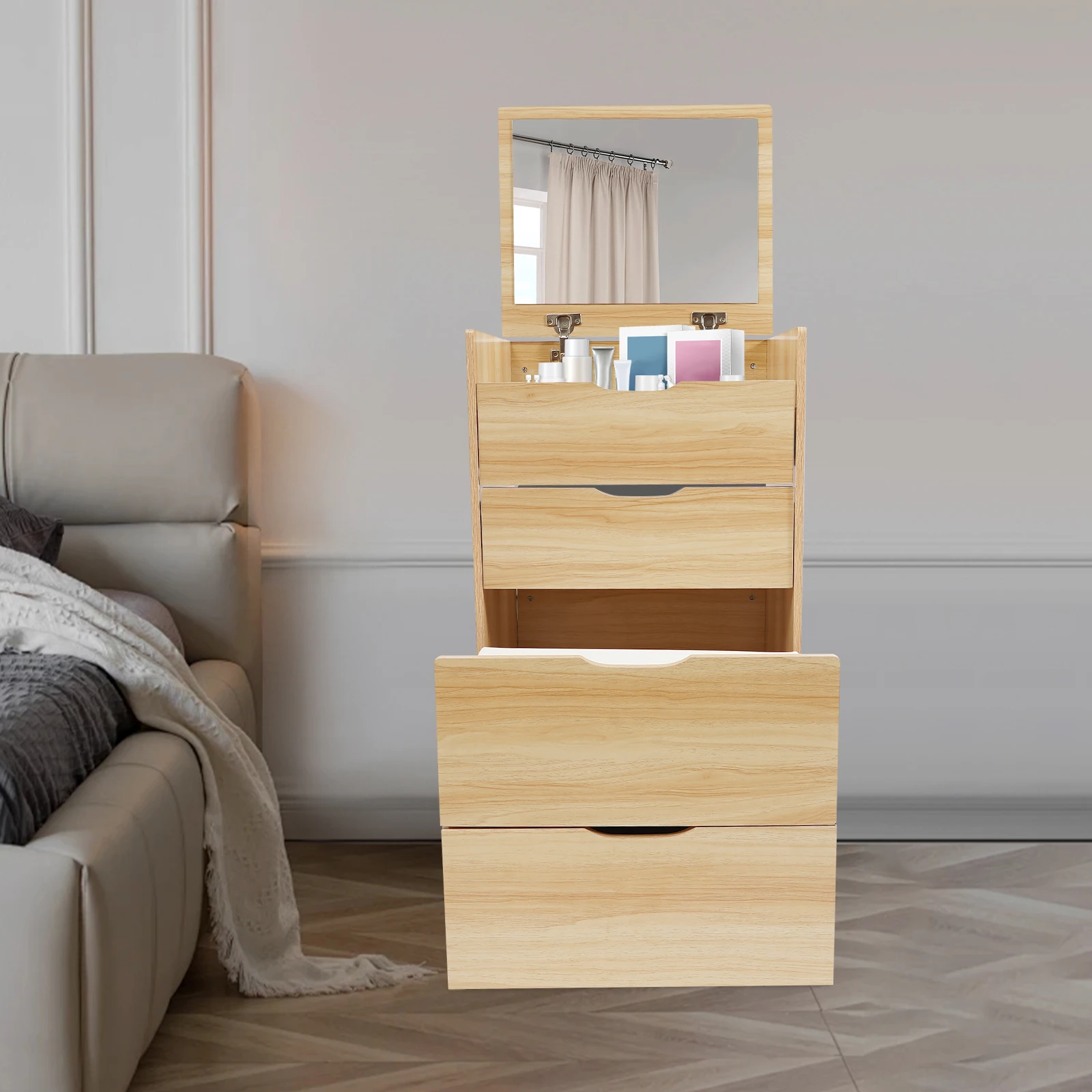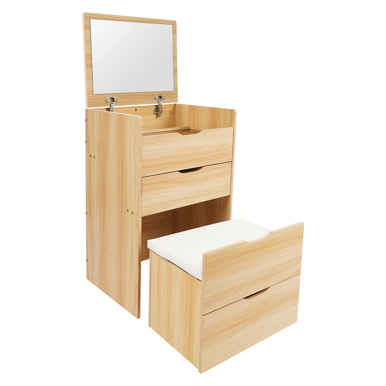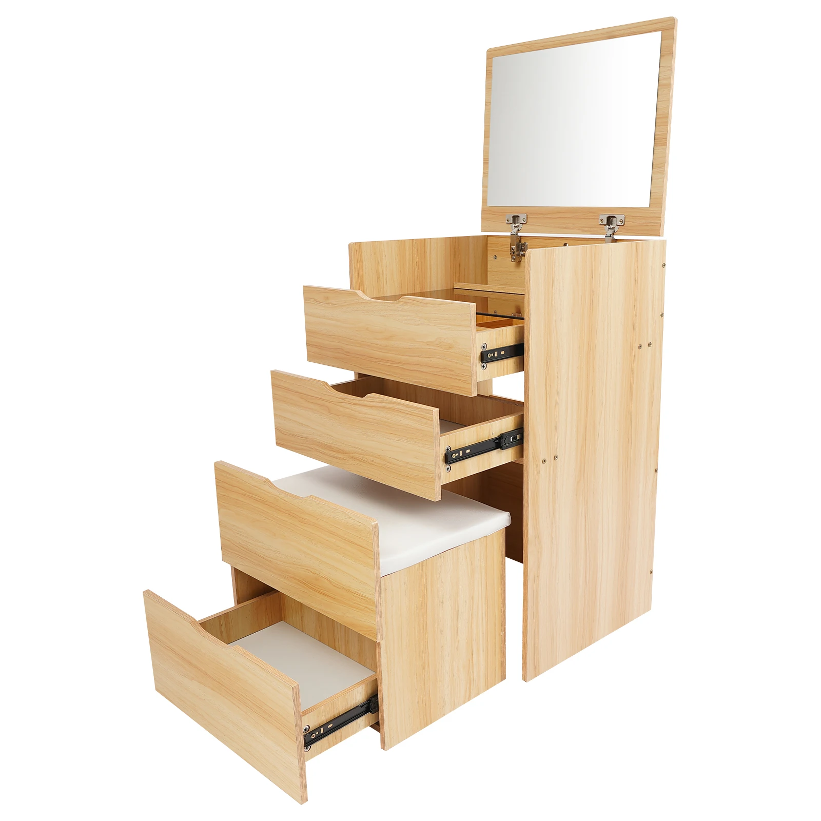 48CM Makeup Table with Makeup Stool, Cabinet with 3 Drawers , +Flip Mirror Modern Style Log Color