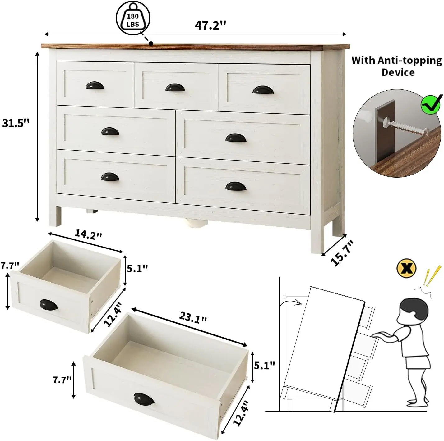 Product Dimensions | 15.7"D x 47.2"W x 31.5"H |