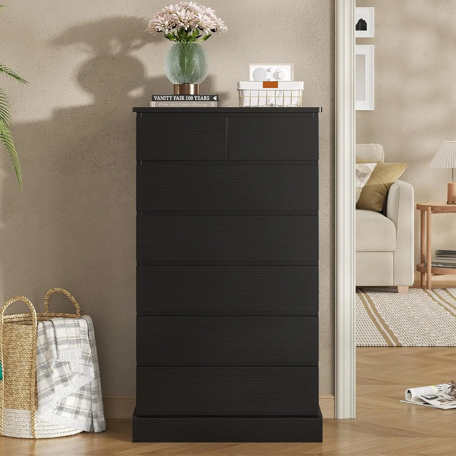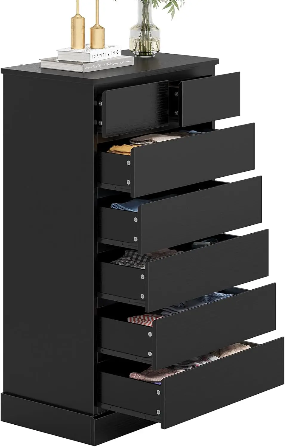 • Reinforced Pedestal - The bedroom dresser is crafted from high-density engineered wood, and the base, which is larger than the cabinet gives the dresser a classic look but also provides extra stability. The tall dresser is also equipped with wall anchors to eliminate tipping concerns, Protecting you and your family's safety.