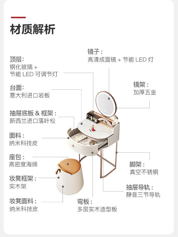 dressing table set with mirror vanity headdresses Mini dressing table Cabinet storage makeup drawers Suspended vanity headband