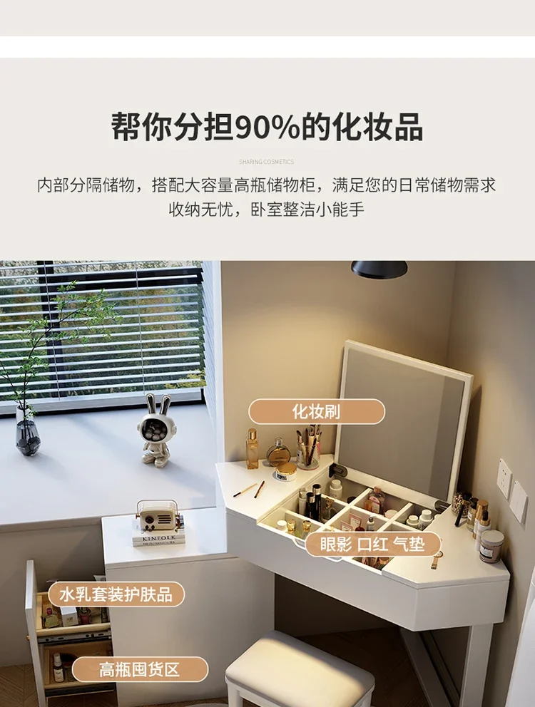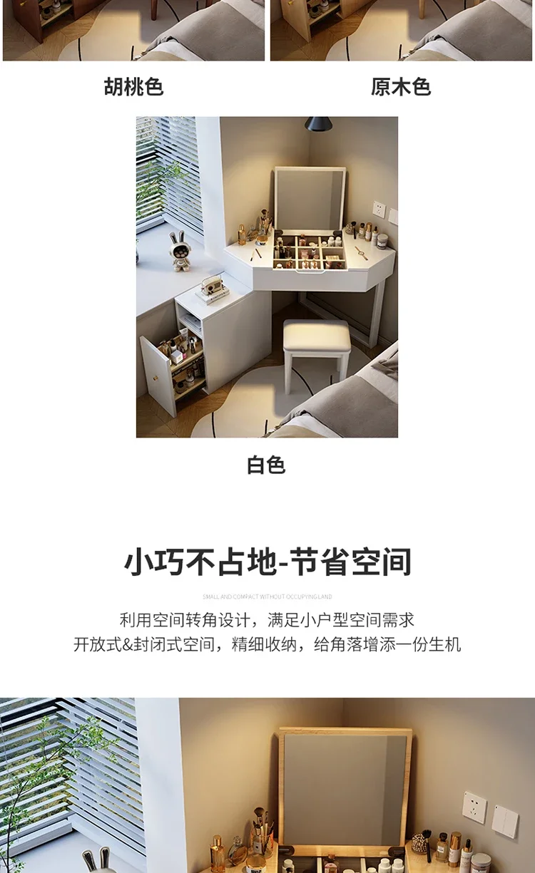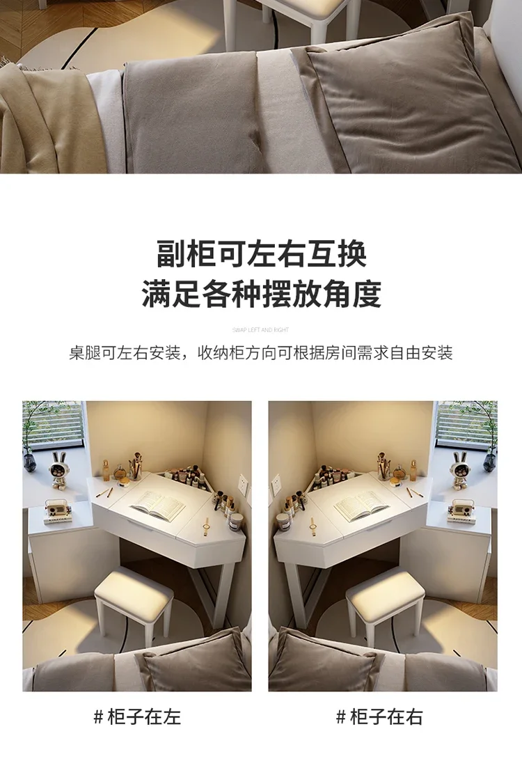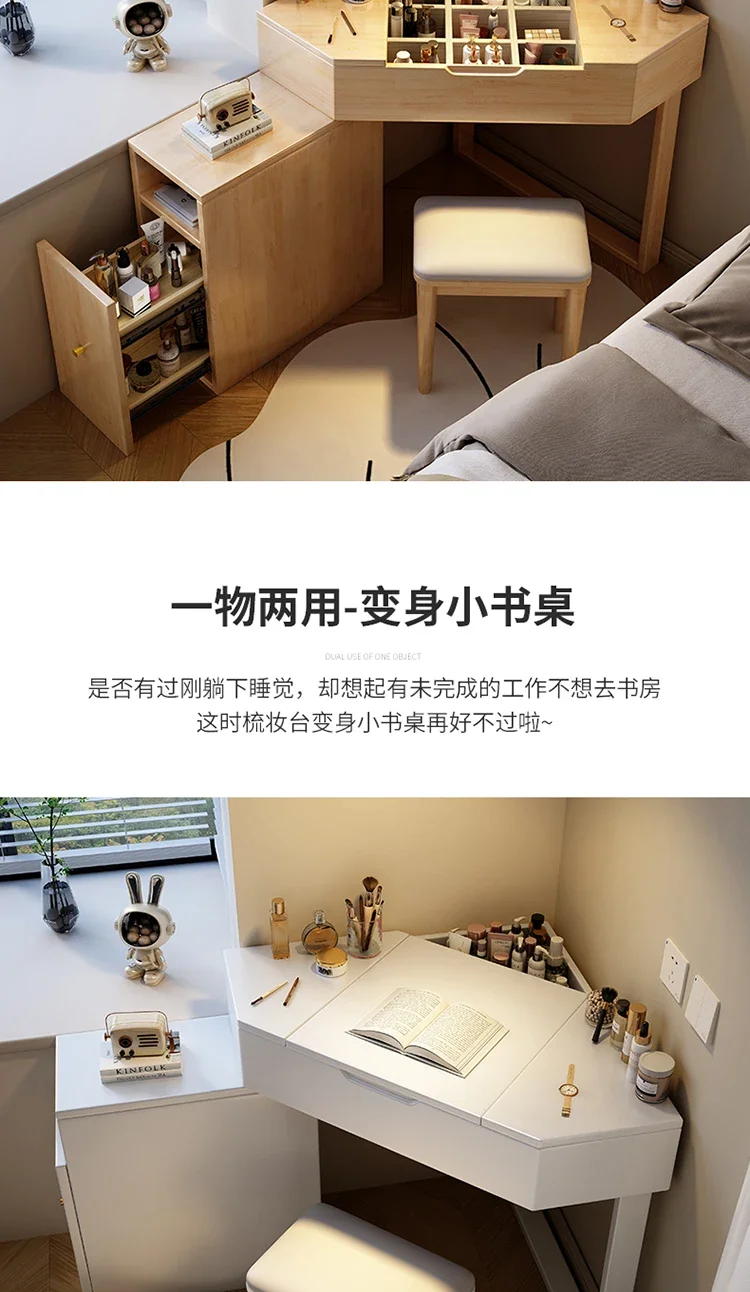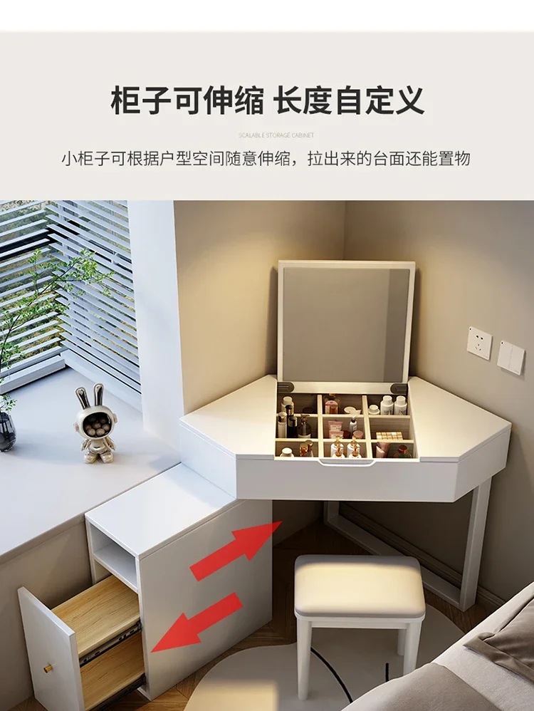 Corner Dressing Makeup Vanity Table with Mirror, Wood Vanity Set with Cabinet Retractable Dresser with Lots Storage for Bedroom