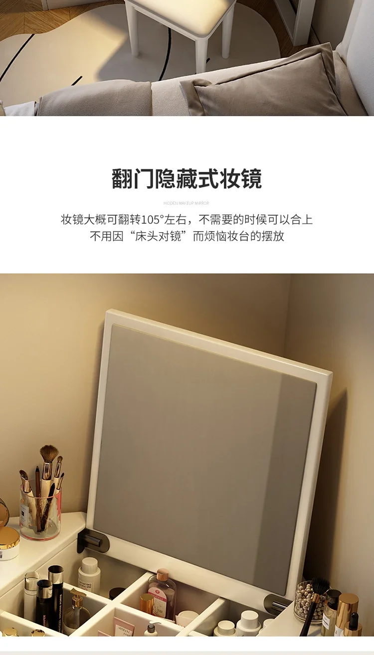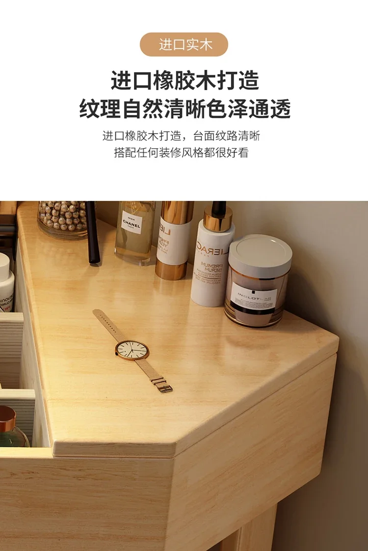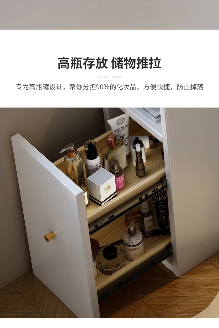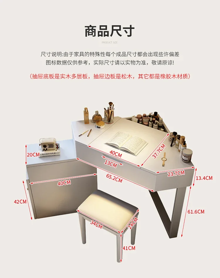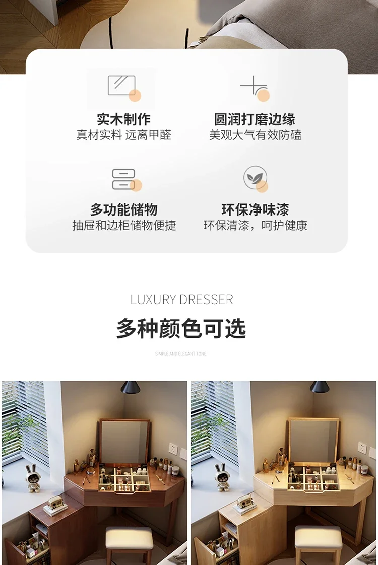 Corner Dressing Makeup Vanity Table with Mirror, Wood Vanity Set with Cabinet Retractable Dresser with Lots Storage for Bedroom
