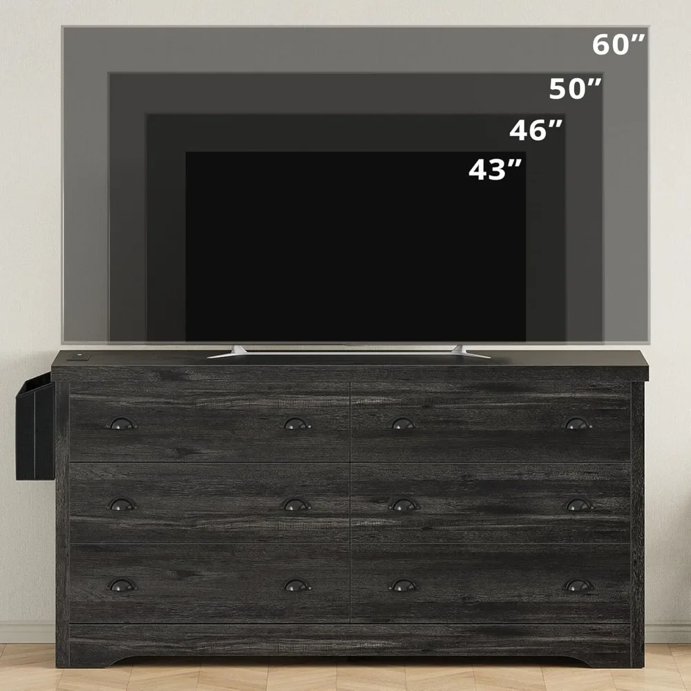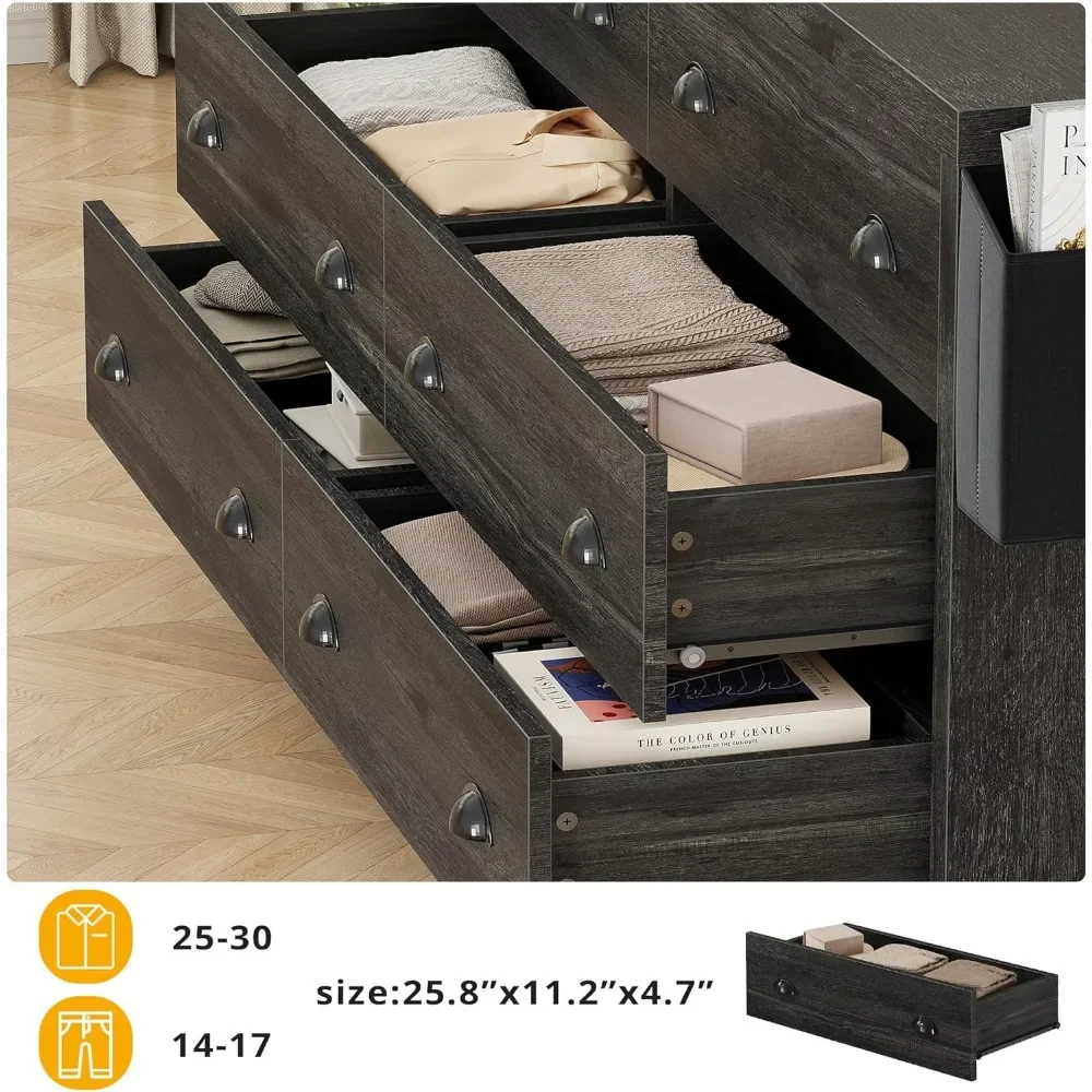 Six Large Capacity Drawers: Six spacious drawers provide ample storage space for clothes, files, and other item