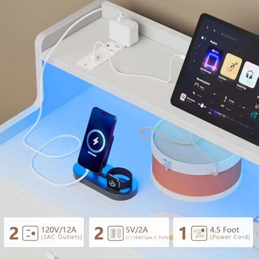 • Convenient Charging Station: Stay connected and eliminate the hassle of tangled cords with the integrated charging station. Equipped with USB and Type C ports, you can easily charge your devices, smartphones, tablets, or laptops.
