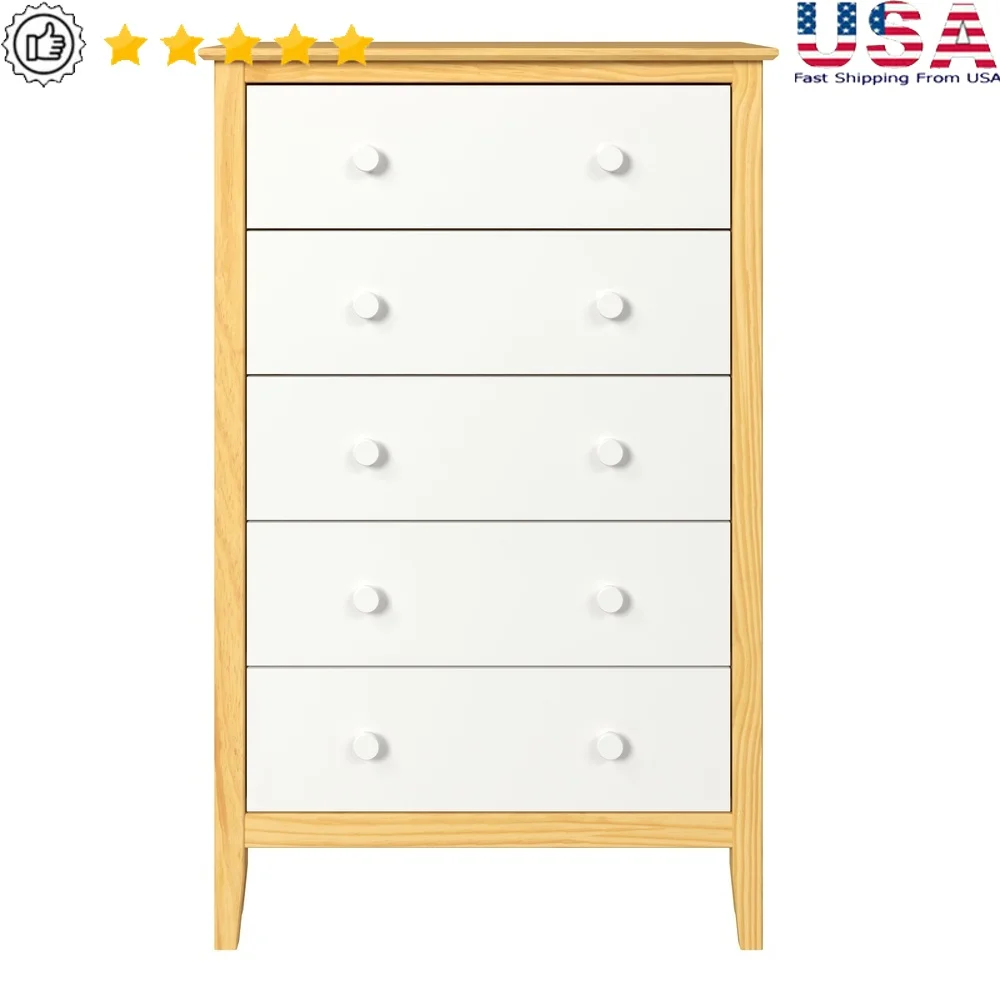 Easy Pieces Solid Pine Five Drawer Chest - Natural/White: Constructed of solid pine wood that will last for years.