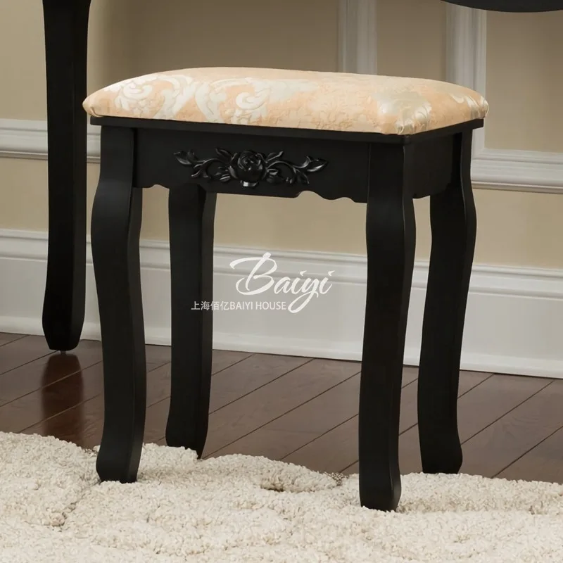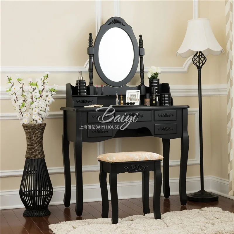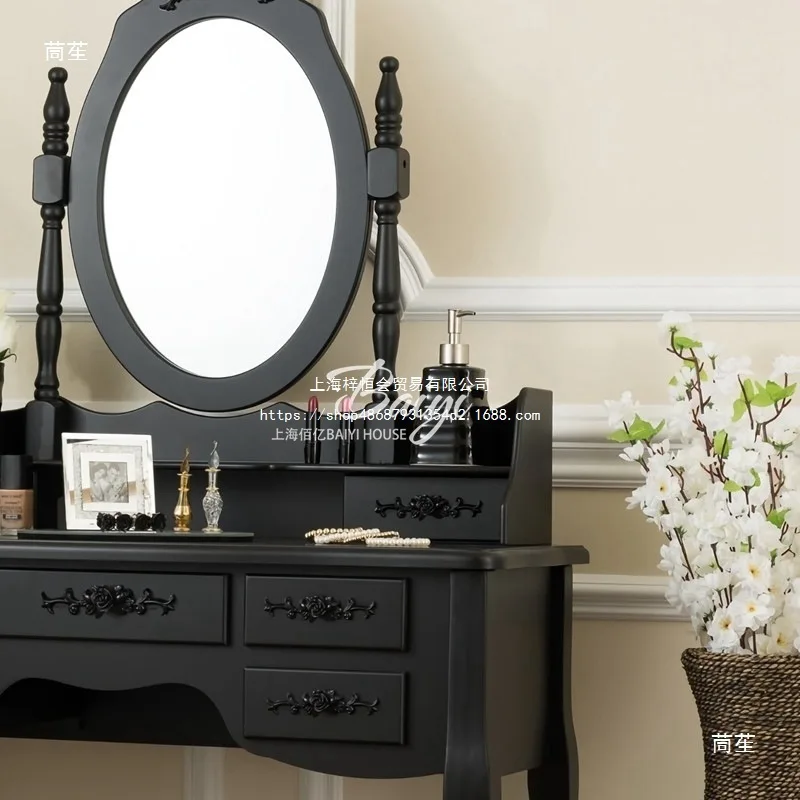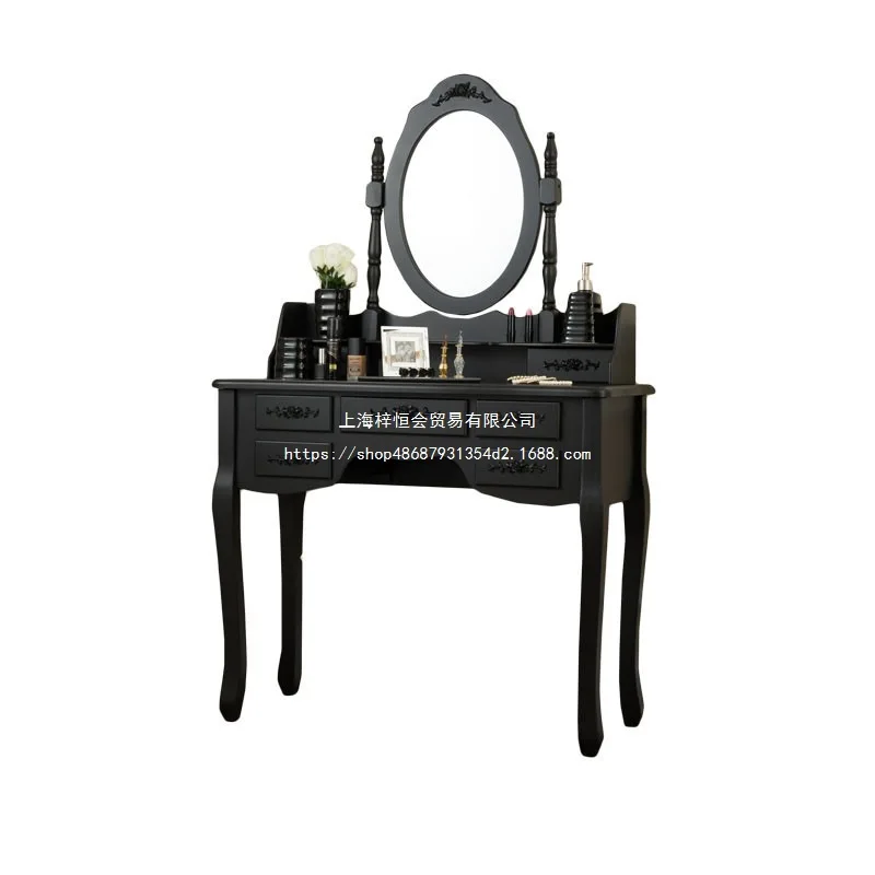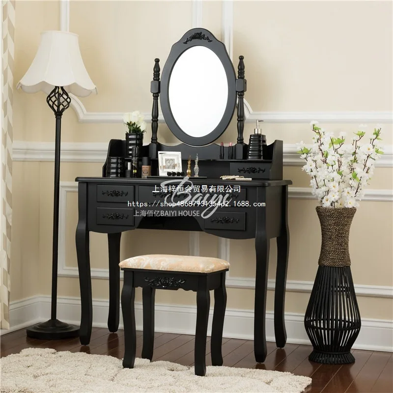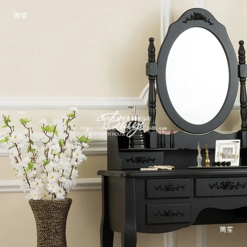 French retro solid wood Roman column black dresser American European engraved bedroom makeup table/table complete
