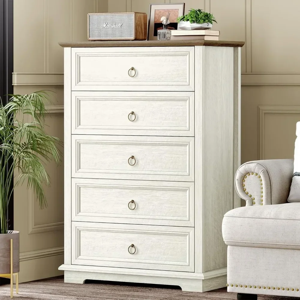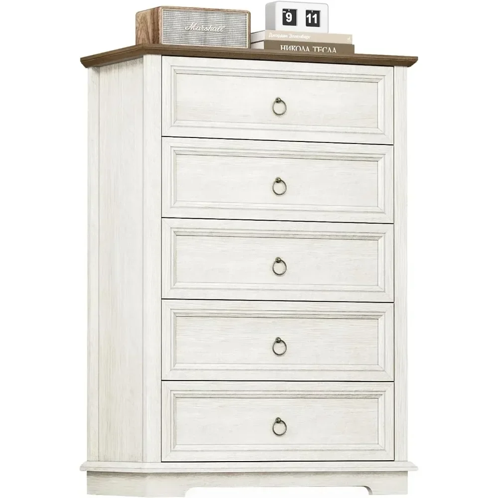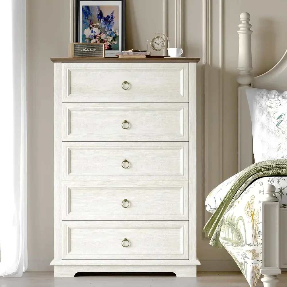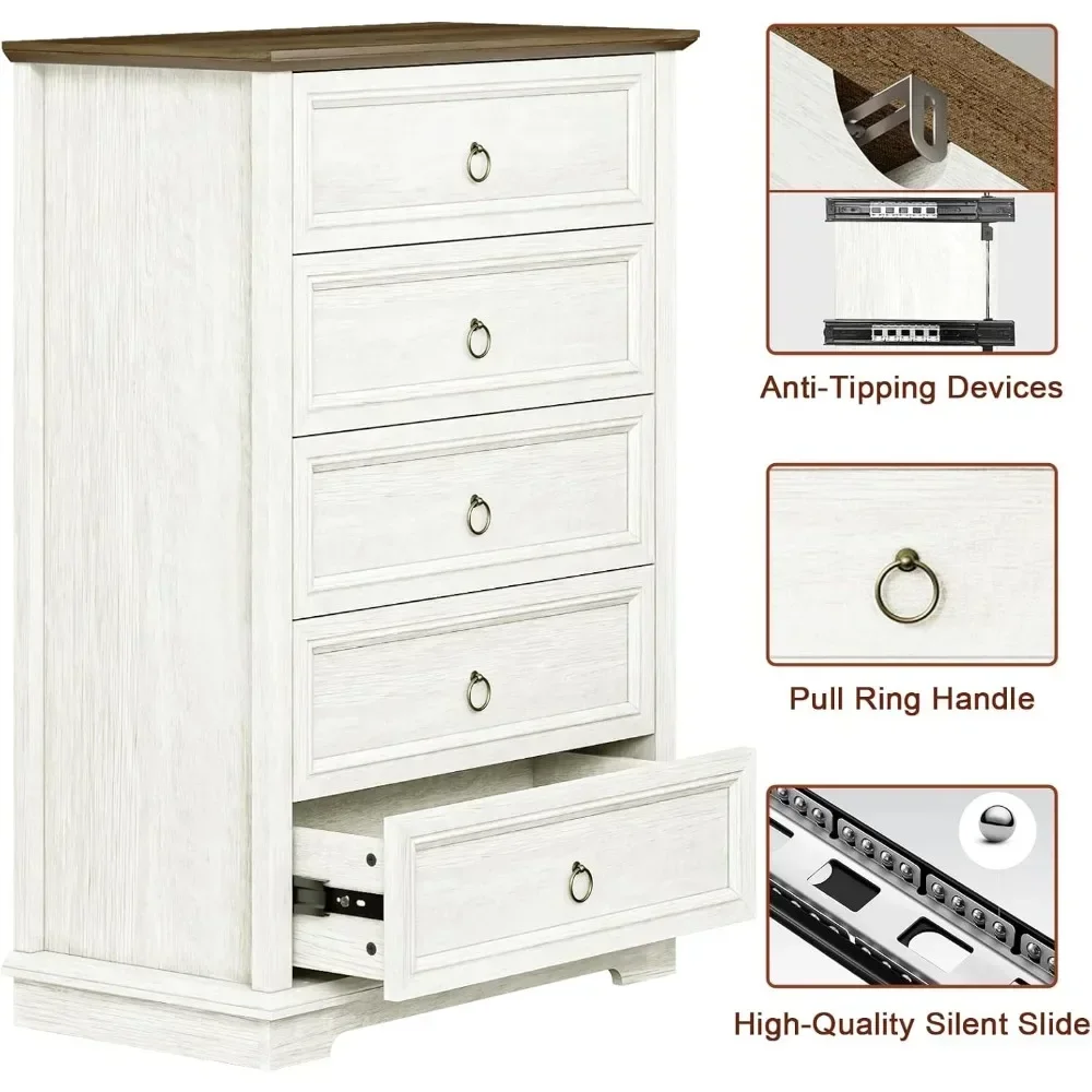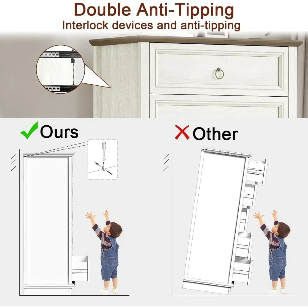 【Safety First】Bedroom dresser with 5 drawers has a double anti-tip devices (interlock and anti-toppling devices) to prevent accidents. Attention: Any two drawers can't be opened at the same time. The double anti-tip devices maximizes the safety of you and your family.