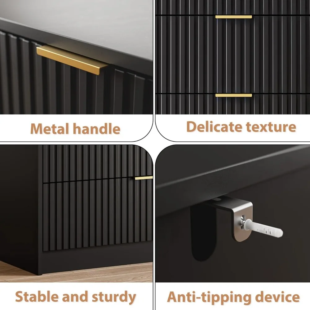 • Modern Minimalist Style: Featuring a fluted drawer panel design, this sleek black dresser exemplifies minimalist elegance. Its exquisite craftsmanship enhances the beauty of any space, creating a clean and tidy atmosphere. If you seek a dresser that adds both character and style to your room, this is the piece to get.
