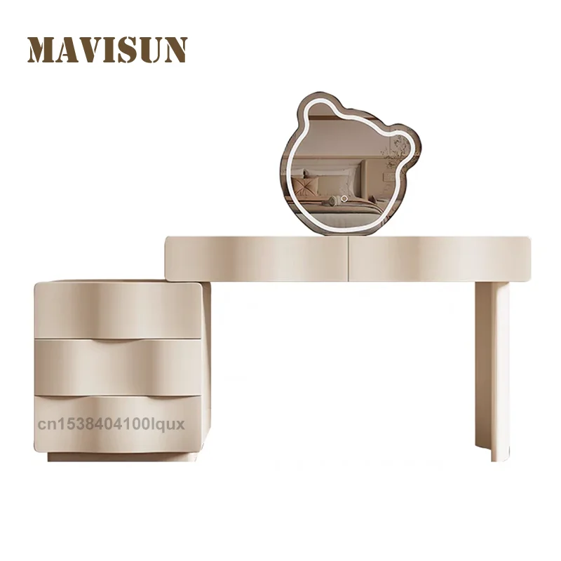 B.Features an adorable bear - shaped LED mirror, providing soft and flattering lighting.