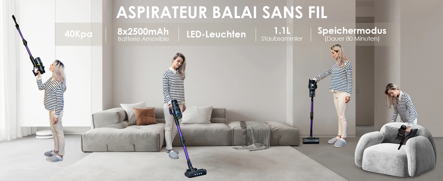 【80 minutes Long run time】:This cordless vacuum cleaner dispenses with the conventional 6-7 cells and excands the battery capacity to 8x2500mAh, effectively solving the problem of inefficient battery life. The impressive runtime of up to 80 minutes allows you to thoroughly clean your entire home without having to constantly recharge the battery. Batteries replacement are available separately from Amazon.