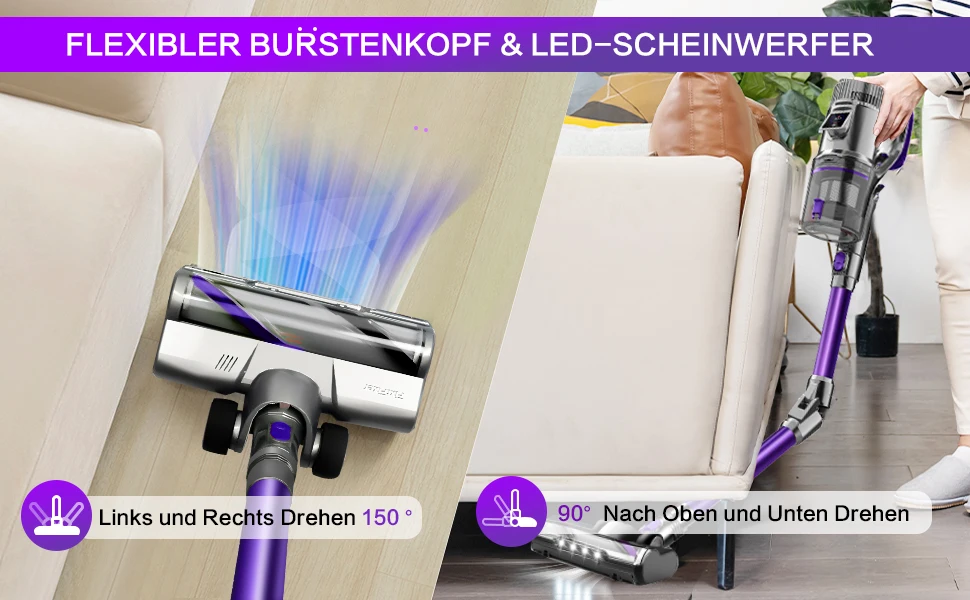 【Self-supporting design】:FixtFixer cordless Hoover uses a self-supporting design to solve the problem of placing the Hoover on the wall and the risk of falling it. You can maintain a comfortable position and easy reach the most difficulty areas without worrying about the collapsing.
