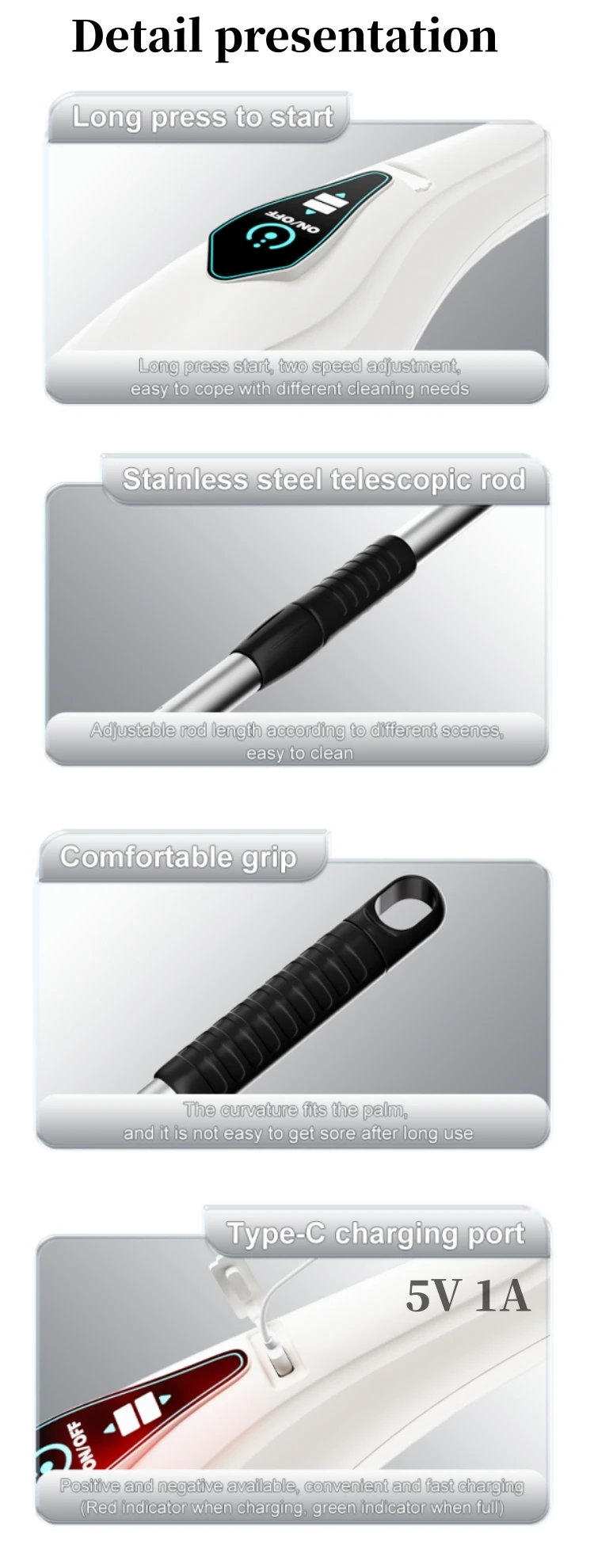 4. Humanized design: Scalable design, cleaning without bending down, making cleaning more convenient.