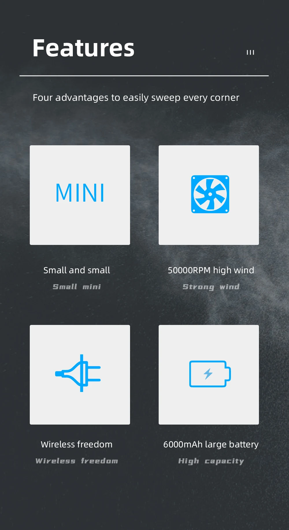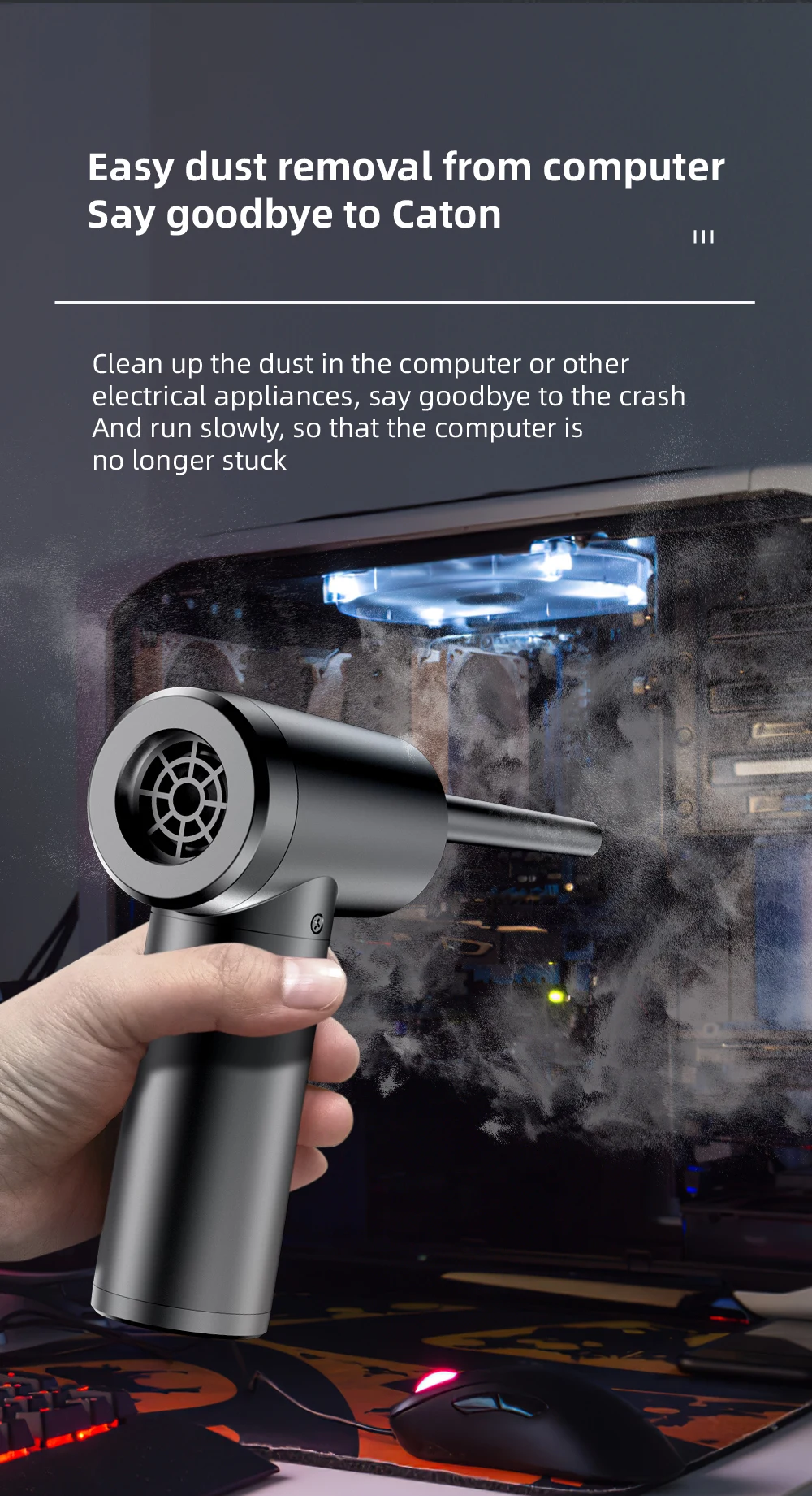 1.High-Speed Airflow: Delivers powerful 50,000 RPM air bursts for effective dust and debris removal from various surfaces, including electronics and keyboards.