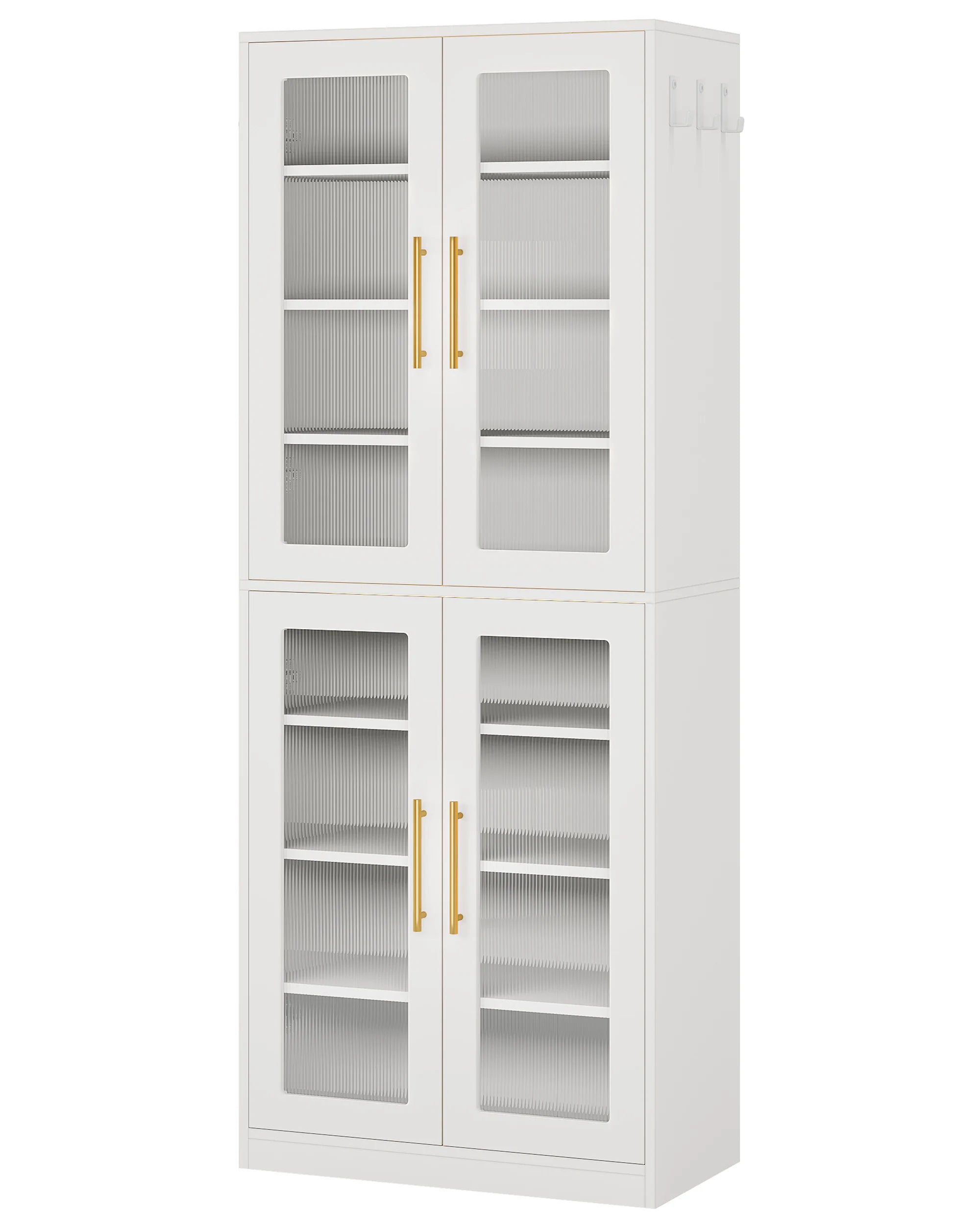 and size). The 8-tier shoe cabinet features adjustable shelves to