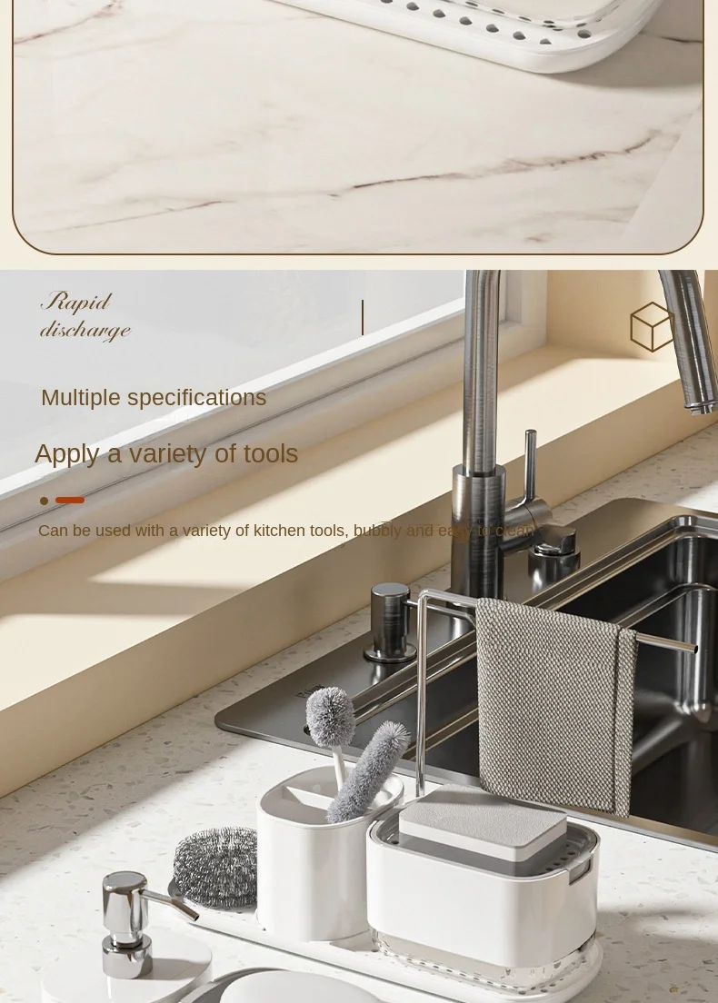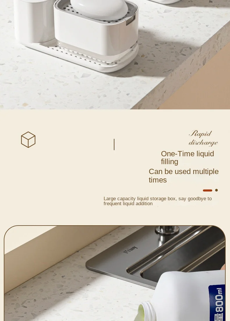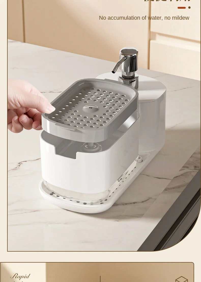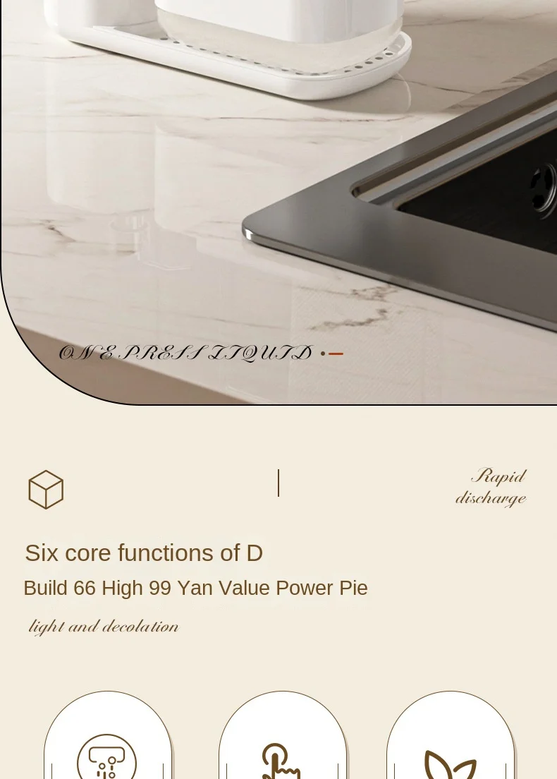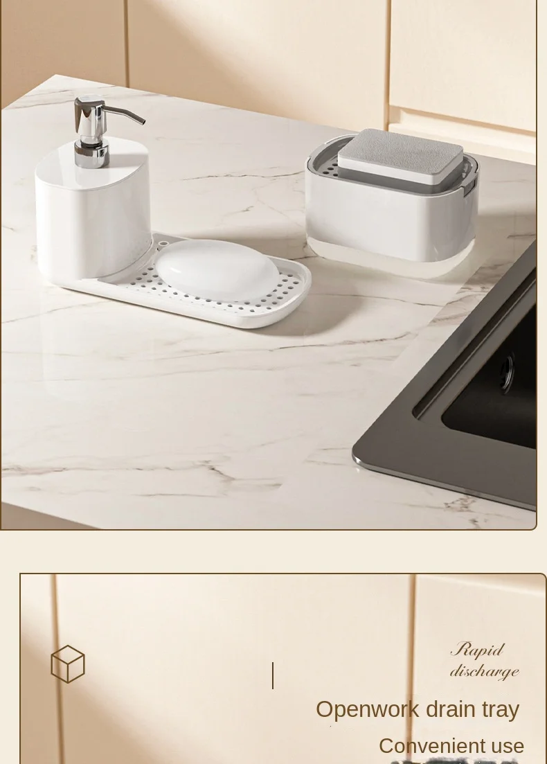Kitchen countertop, detergent outlet box, sink, hand sanitizer outlet box, press soap dispenser, kitchen storage rack
