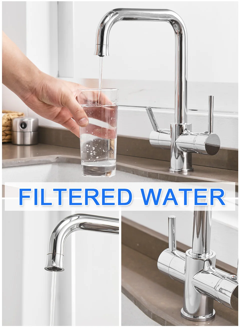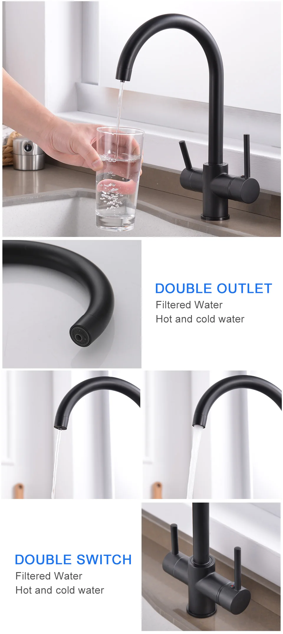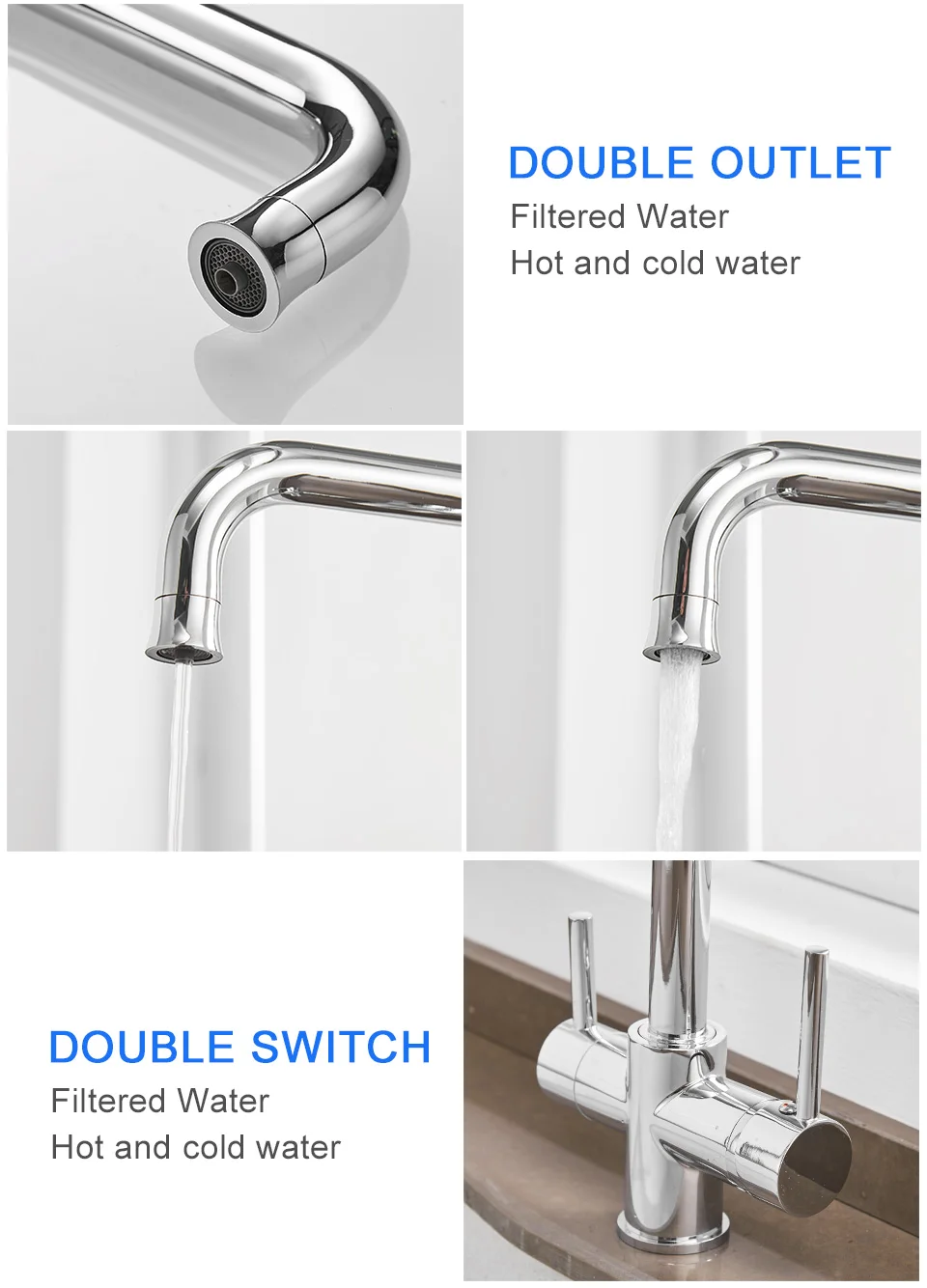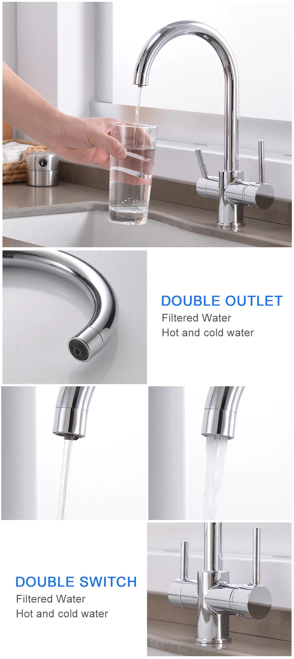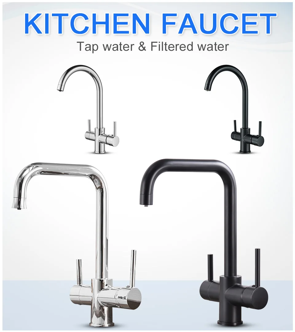 ROVATE 3 in 1 Kitchen Faucet, Hot and Cold Kitchen Sink Faucet with Drinking Faucet Water Filter