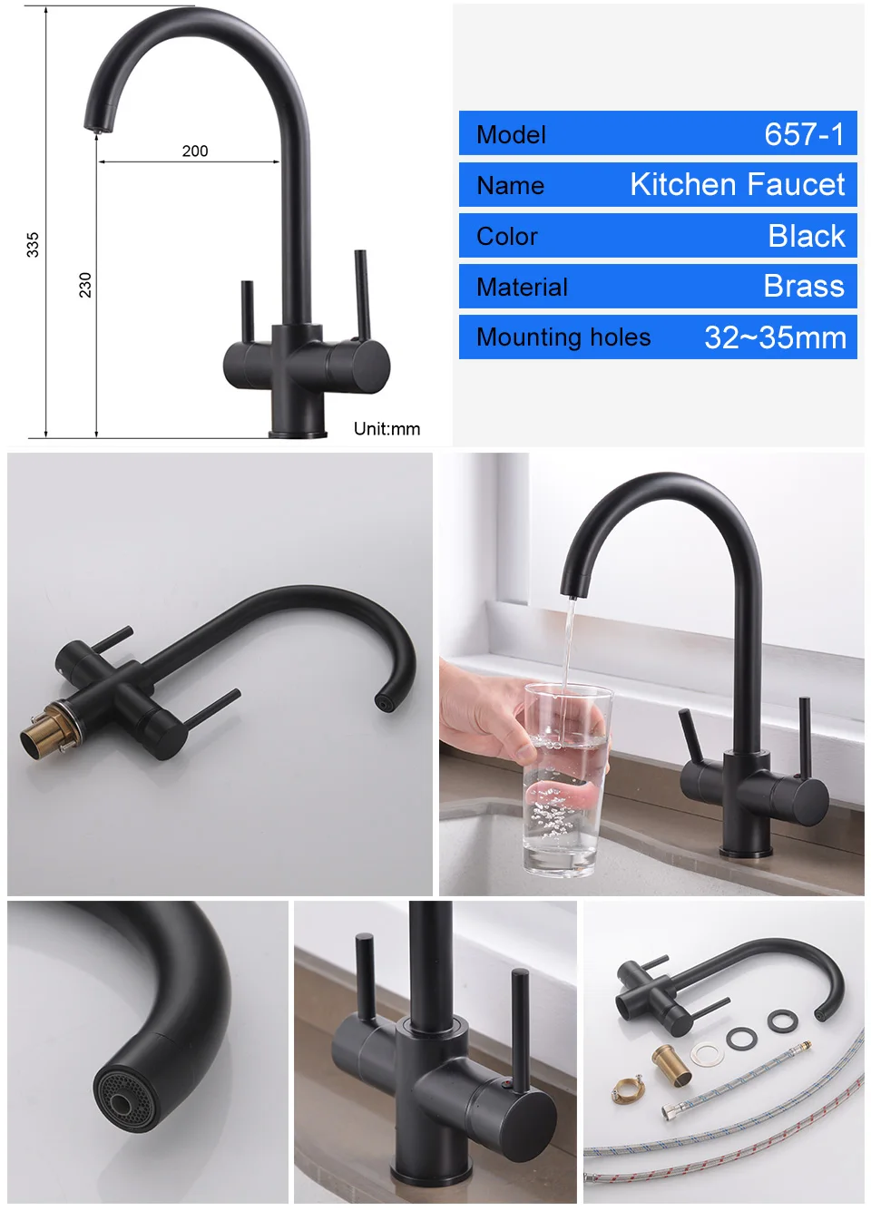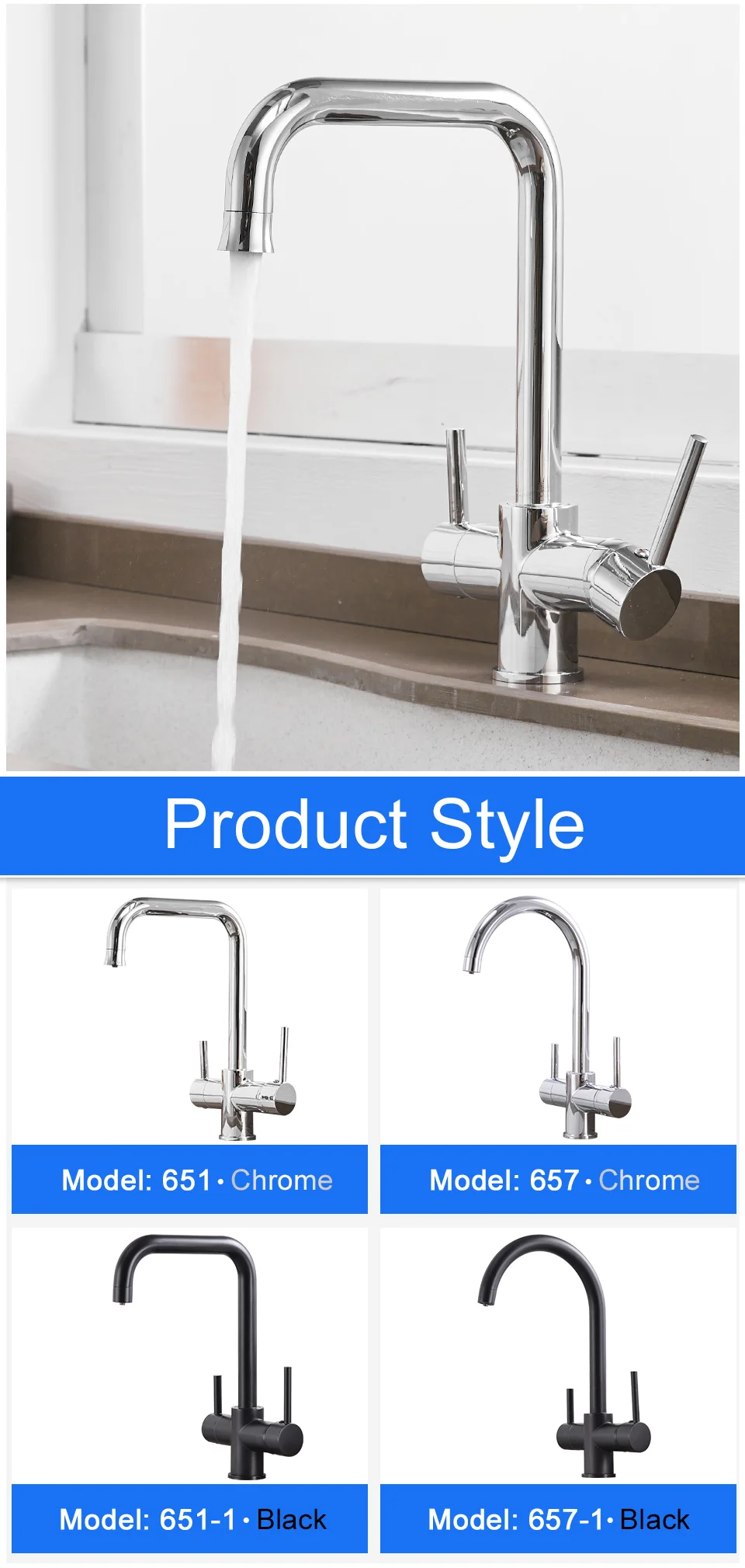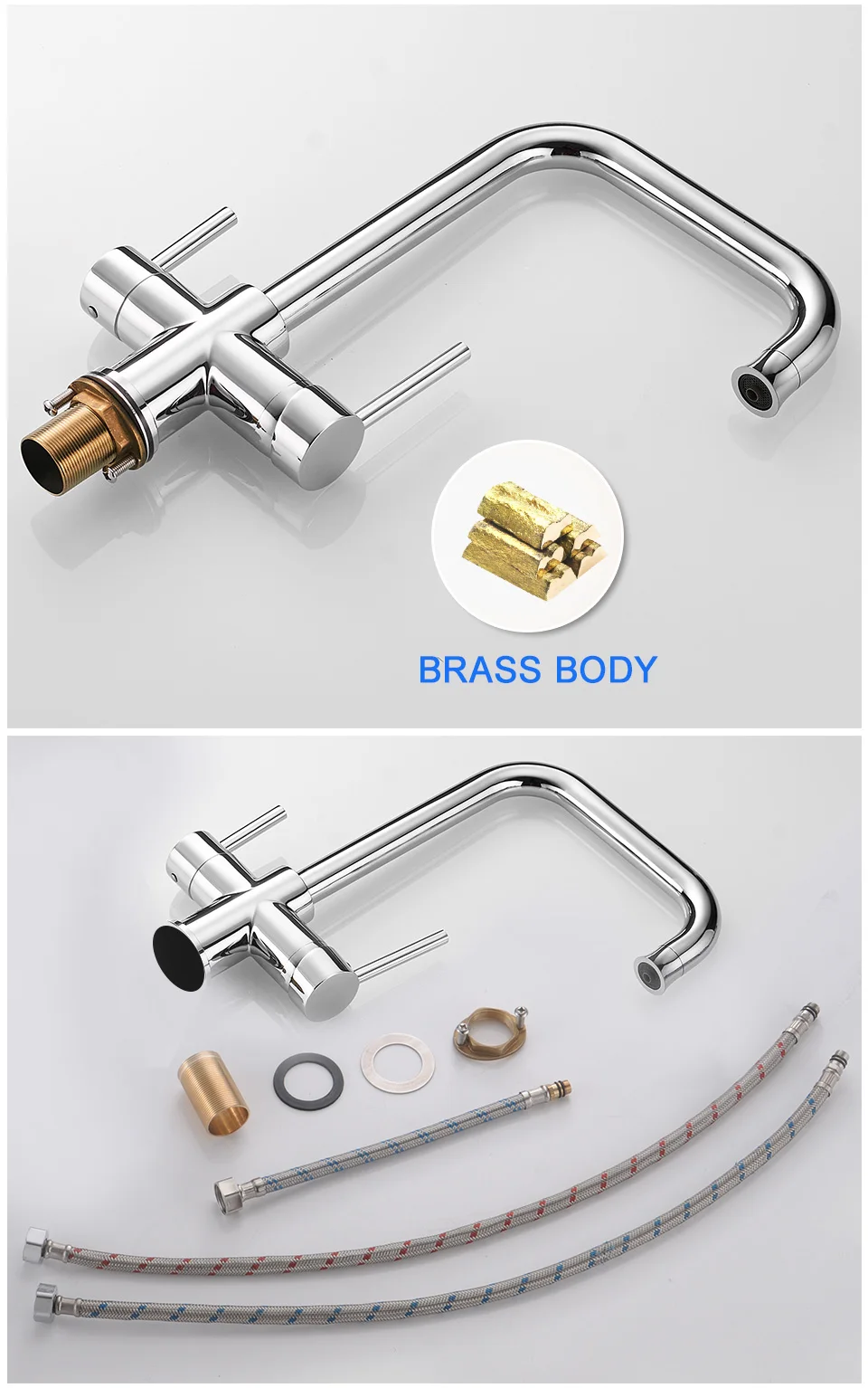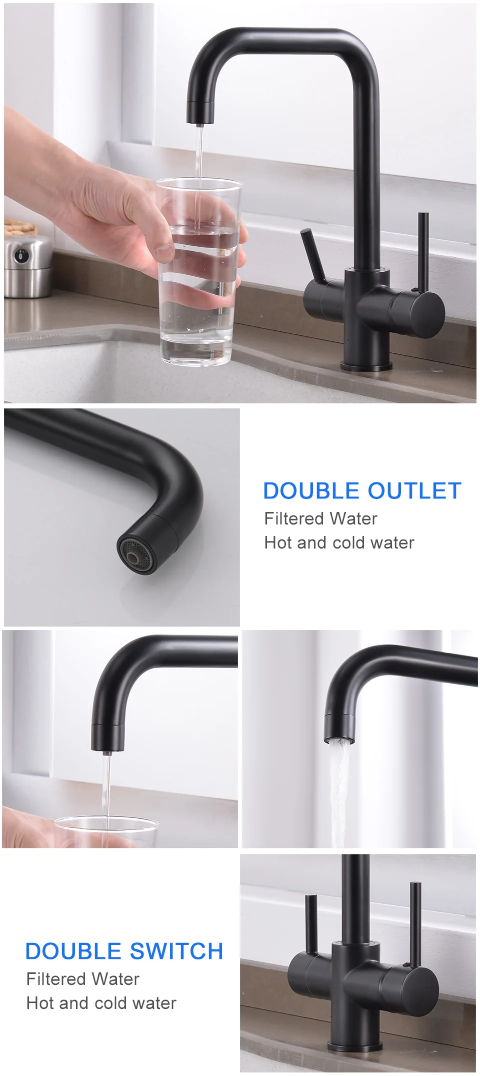 ROVATE 3 in 1 Kitchen Faucet, Hot and Cold Kitchen Sink Faucet with Drinking Faucet Water Filter
