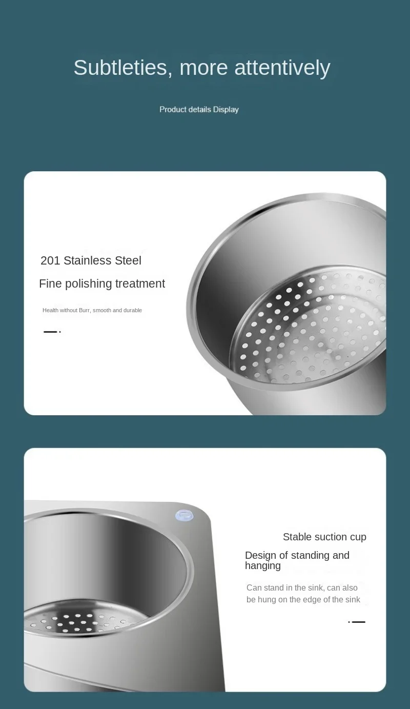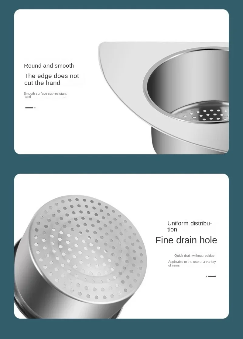 【High Quality Food Grade Material】The drain basket is made of food grade material 304 stainless steel, no need to worry about harmful substances