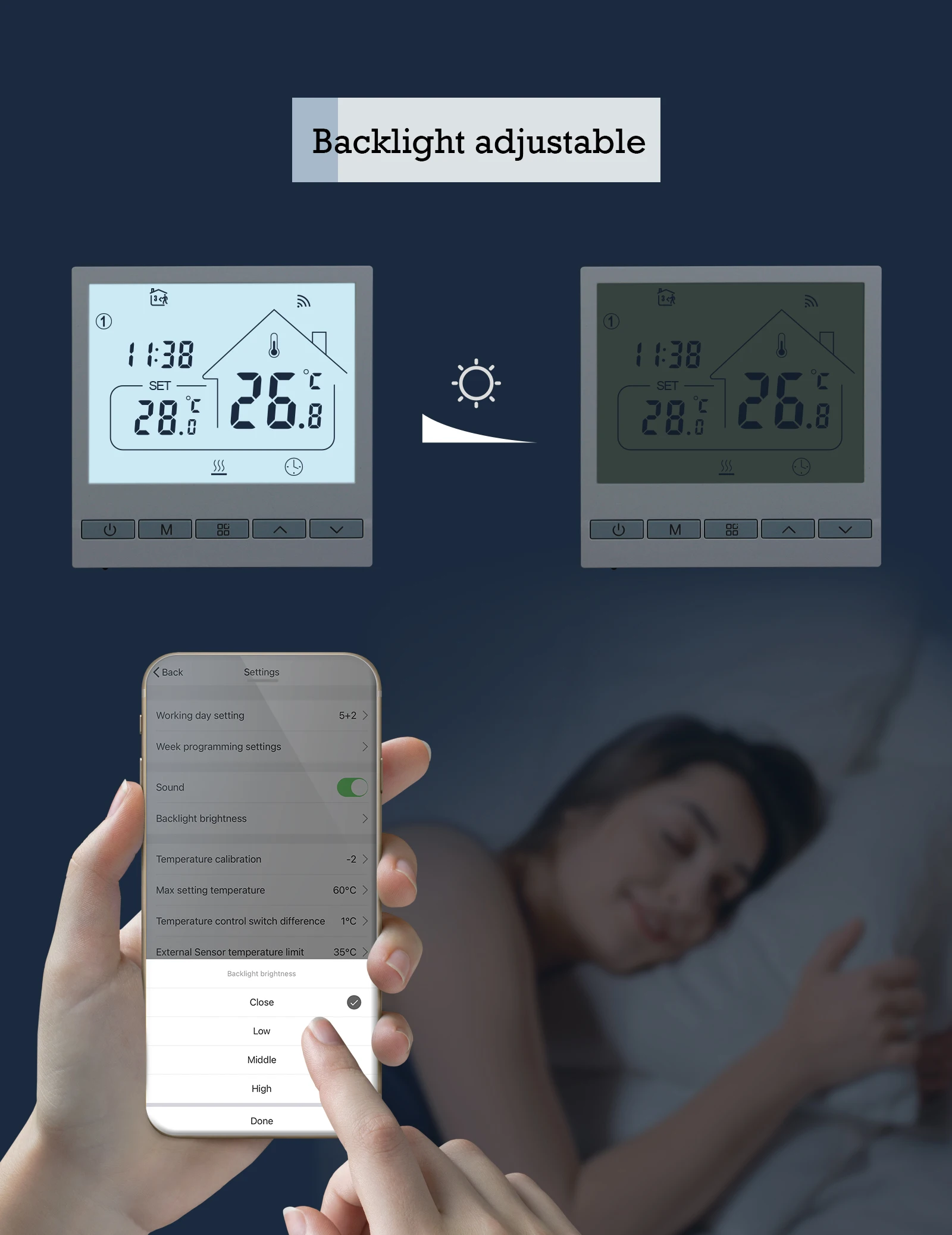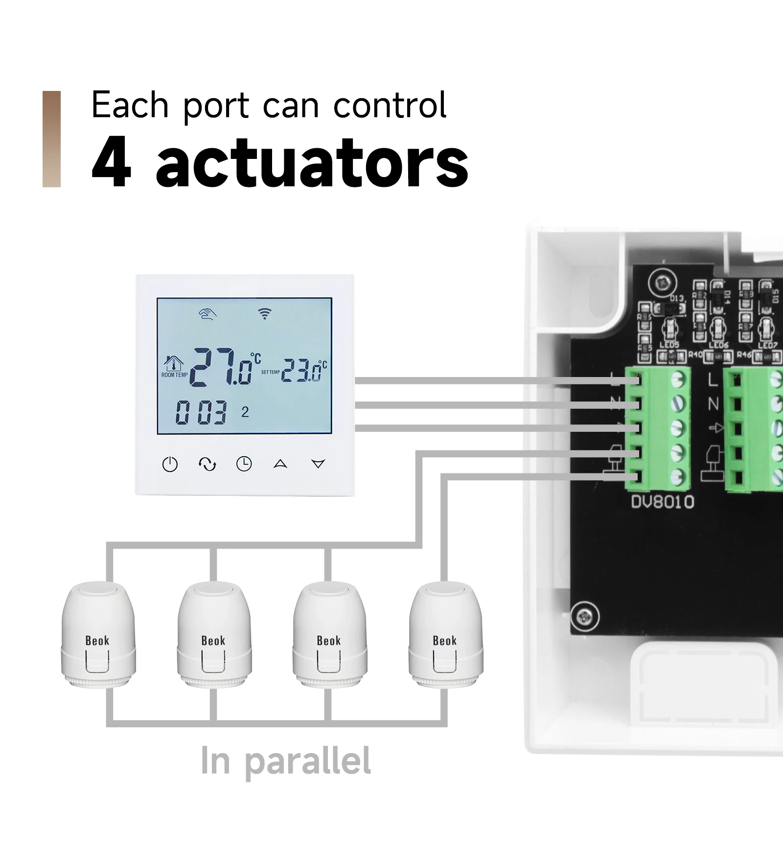 Connection:One Hub can control 8 pcs thermostats. 1 Thermostat can control up to 4 electric thermal actuators