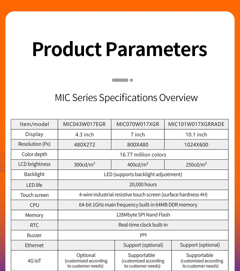 1 set of MIC Network Port Touch Screenand cables(cables can be purchased from the link in our shop)
