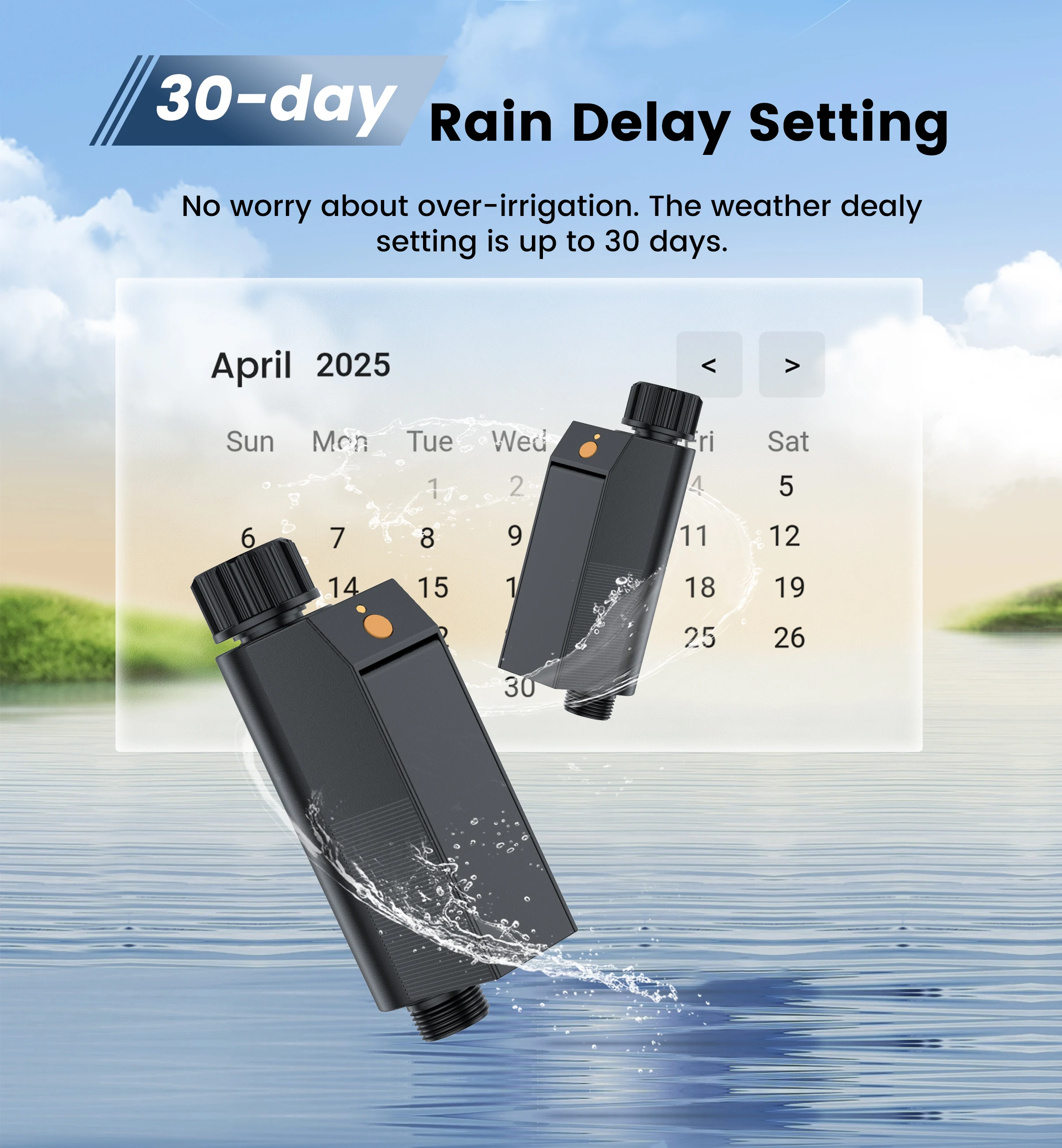 When storms roll in, your timer skips cycles automatically—saves water and shields plants from soggy stress. Program delays for up to 30 days and let nature do the rest.