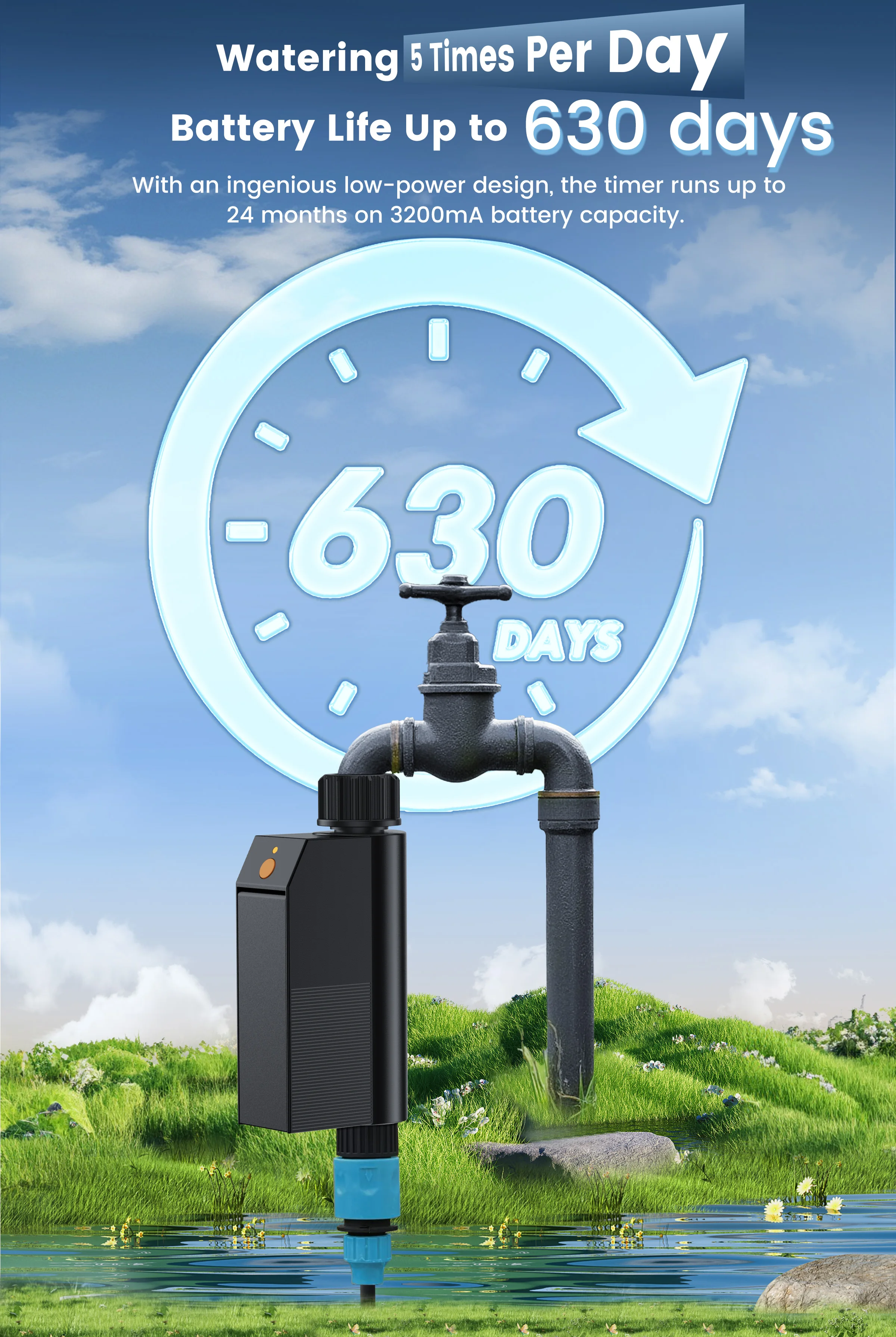 1. The 630-day battery life data is based on watering 5 times a day for 10 minutes each time.