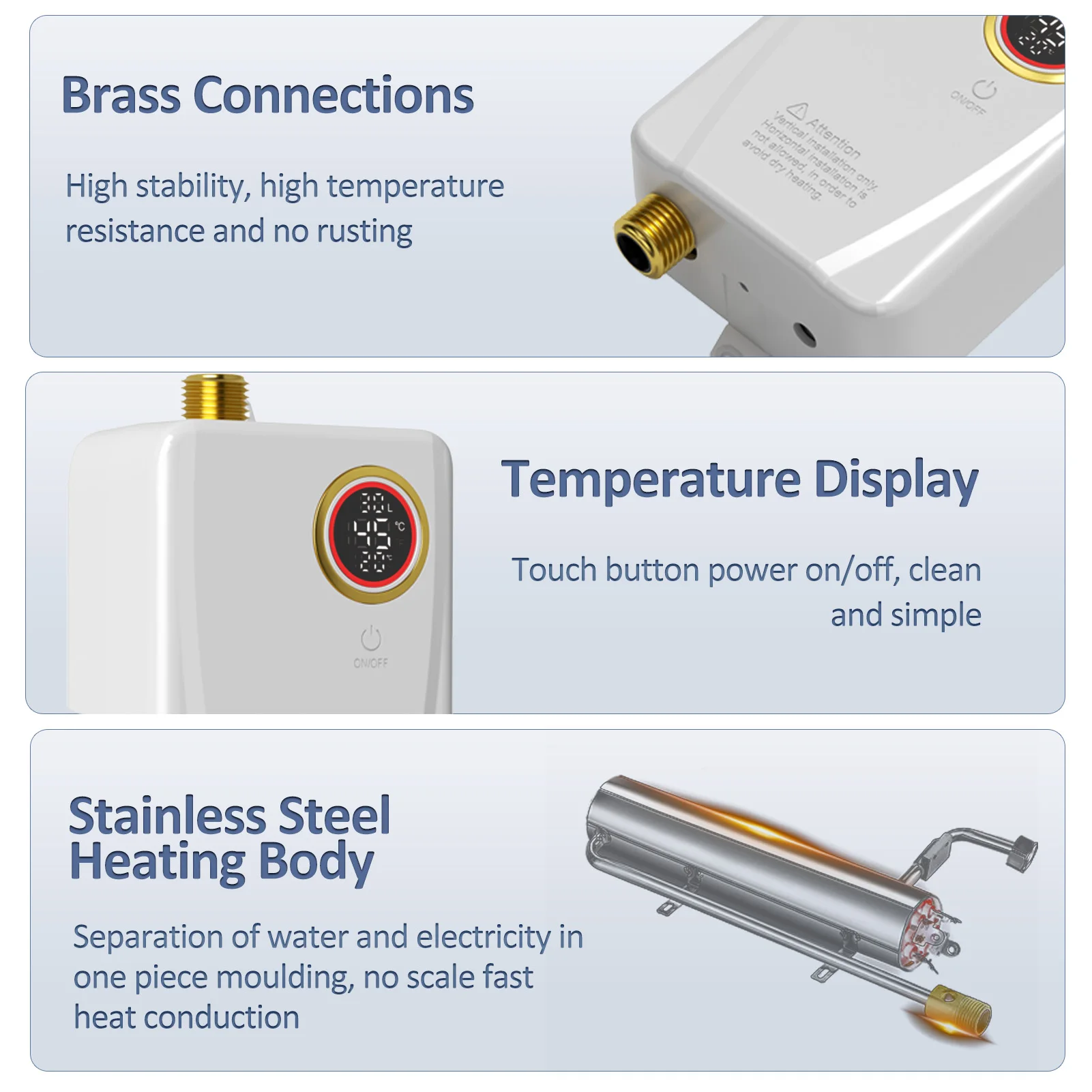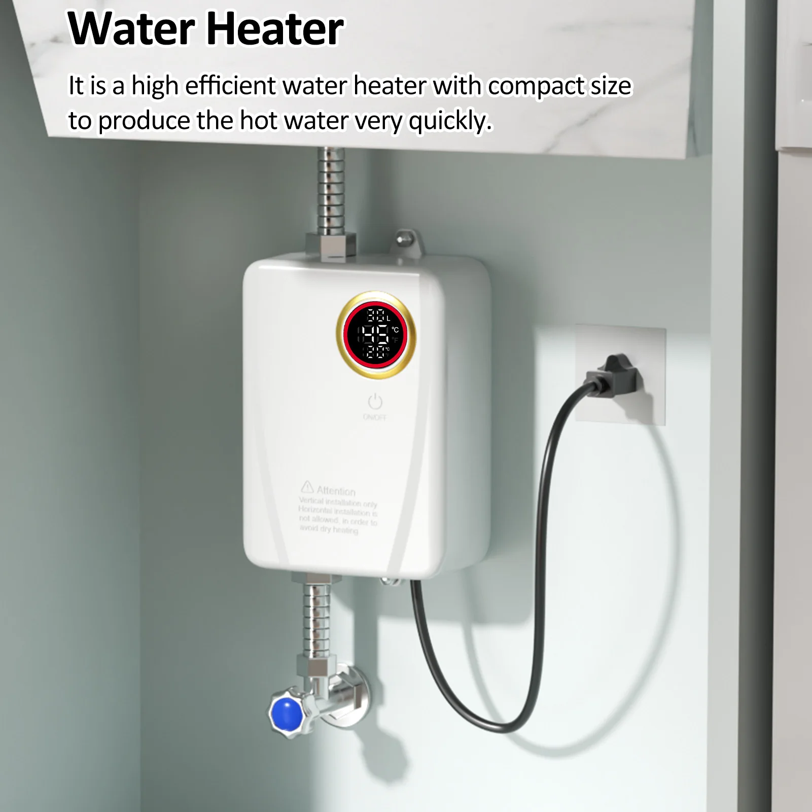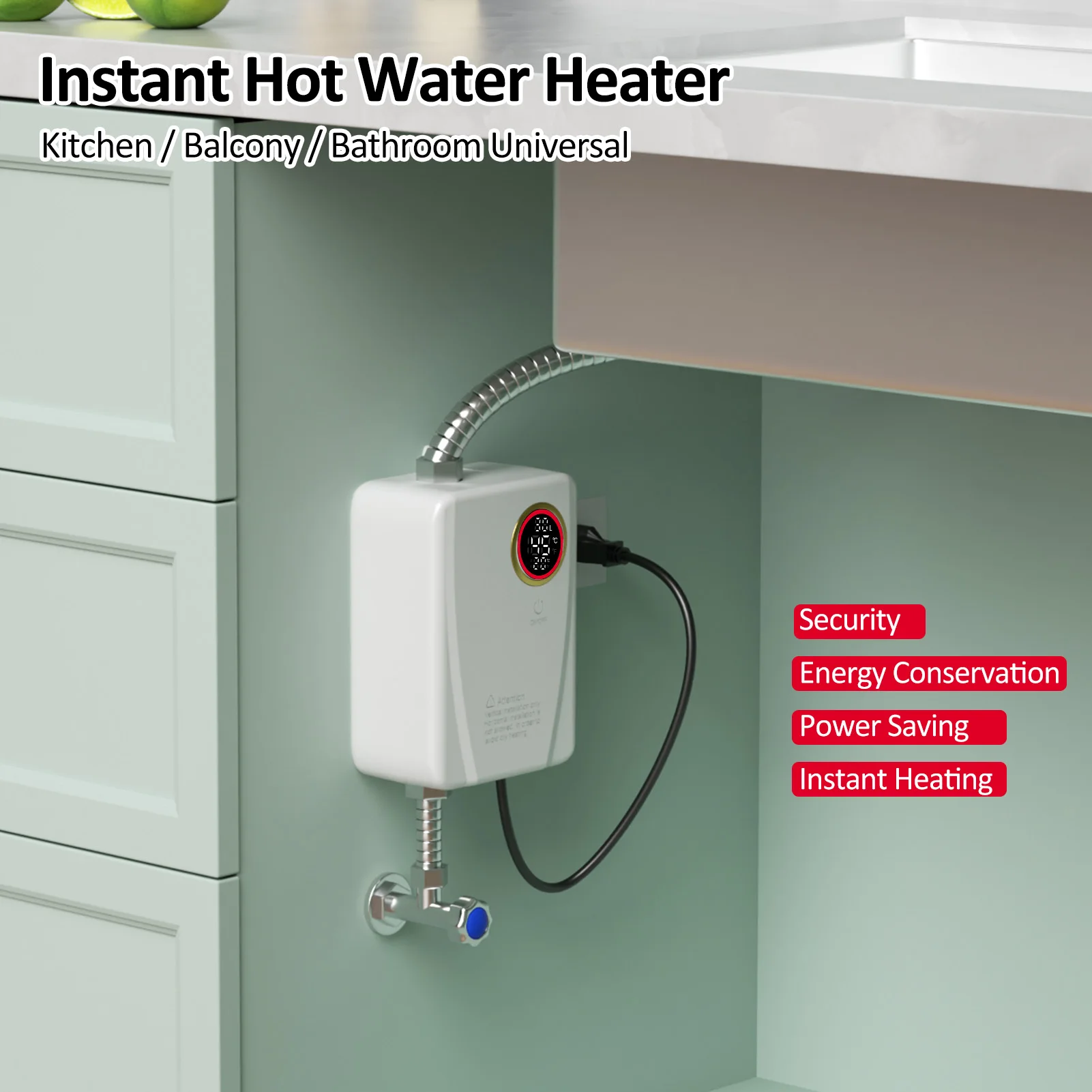 Instant Water Heater 3500W 220V Mini Tankless Instant Hot Water Heater Bathroom Kitchen Washing With Digital Temperature Display