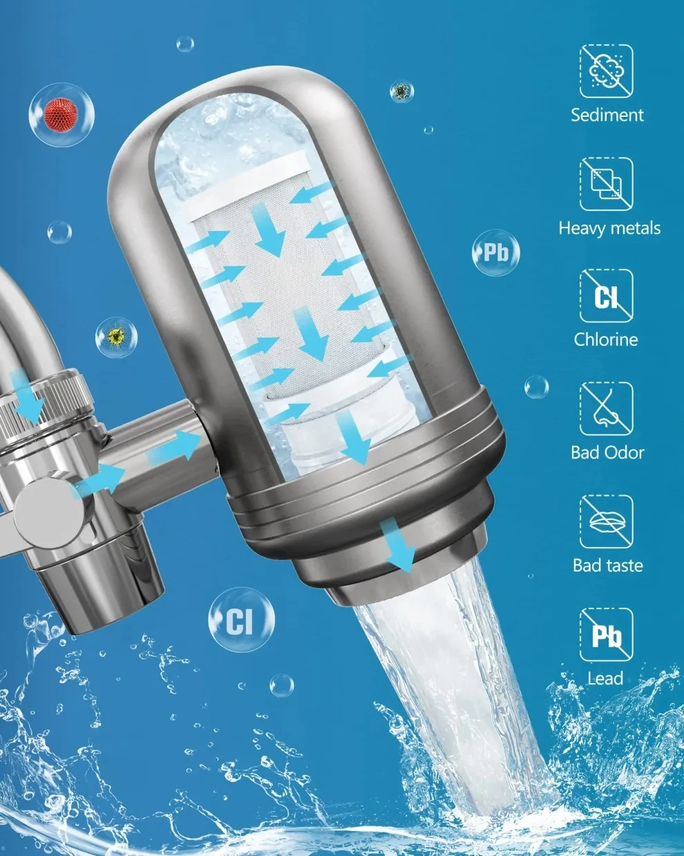 UPGRADED STAINLESS STEEL: 304 Food grade stainless steel faucet water filter, more sturdy and durable than plastic material. You don't need to worry about any possible leakage, crack, corrosion or odd smell while using.
