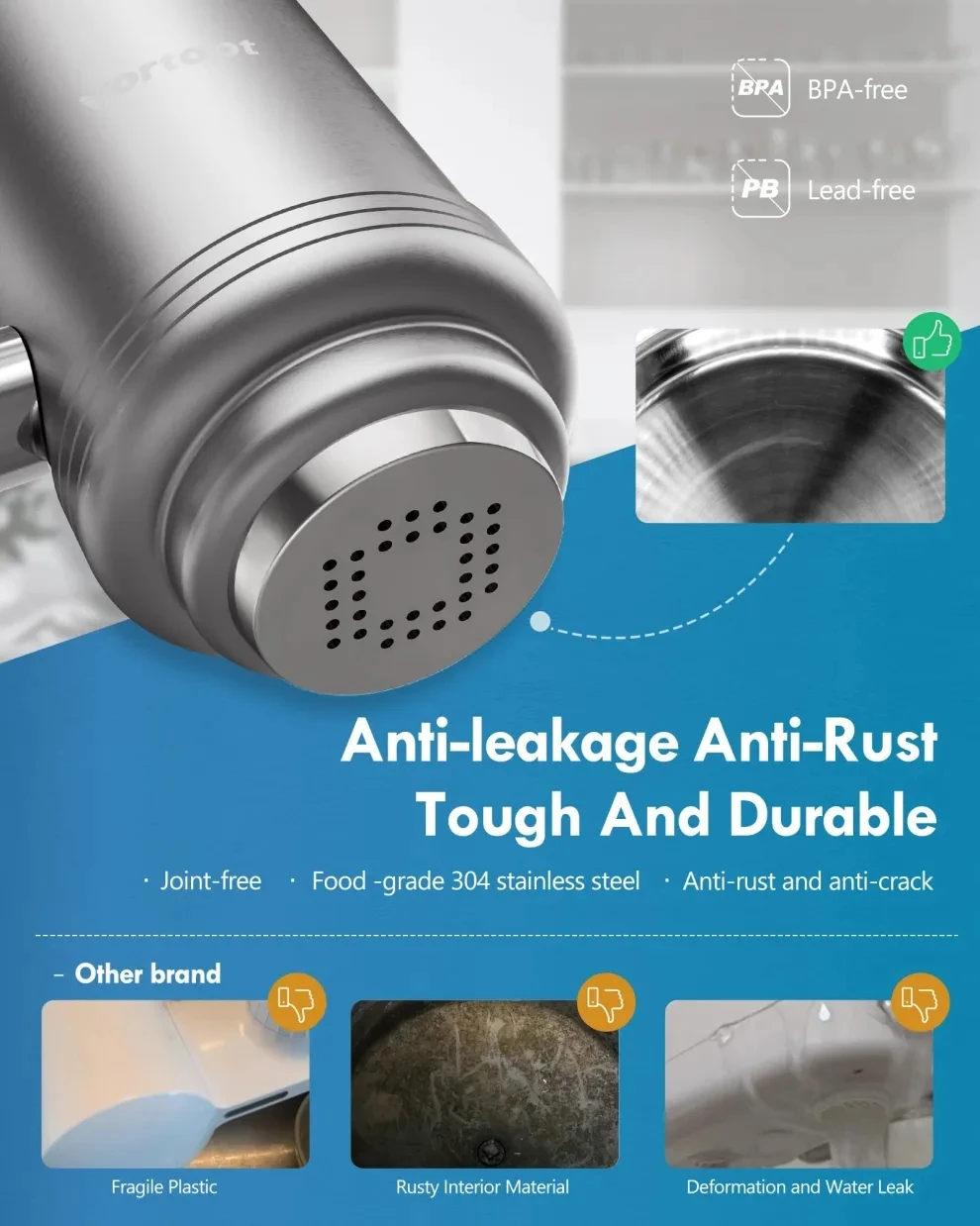 CERTIFIED 5-STAGE FILTRATION: Enjoy fresh purified water with Vortopt faucet mount water filter. With purification to 0.5um, the filter is NSF certified to reduce 99% impurities such as rust, sediments, chlorine, lead, odor and improve taste, making your water clean and healthy. (Not for reducing TDS)