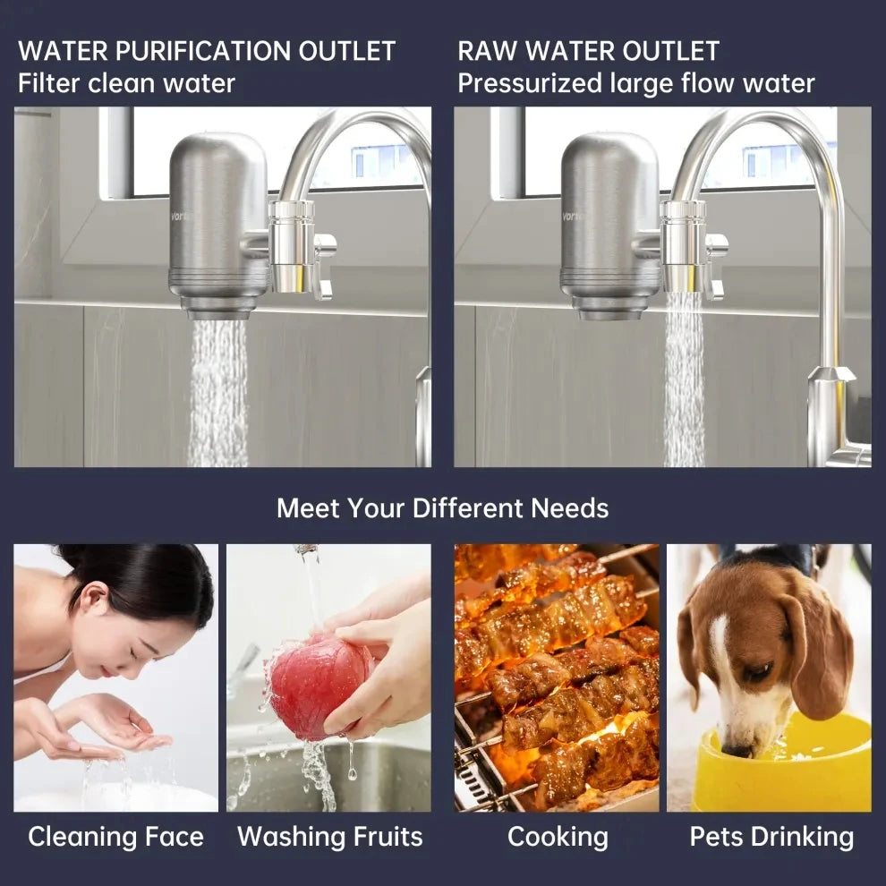 VARIOUS APPLICATION: Vortopt faucet water purifier is an ideal choice for daily drinking, cooking, cleaning, and skincare. You can install the tap filter in your kitchen, bathroom, or tub to meet different water needs. It's small and very convenient to use.