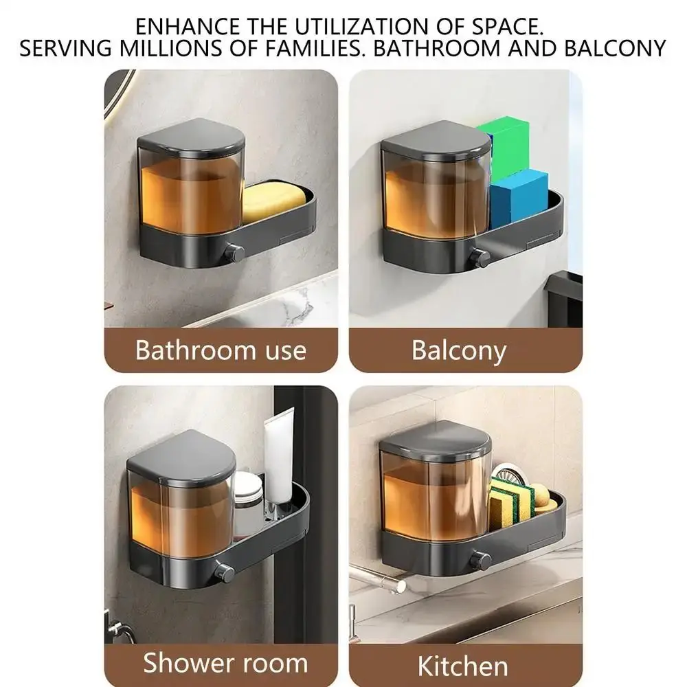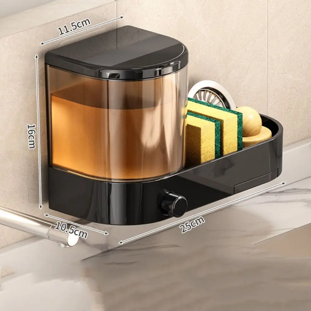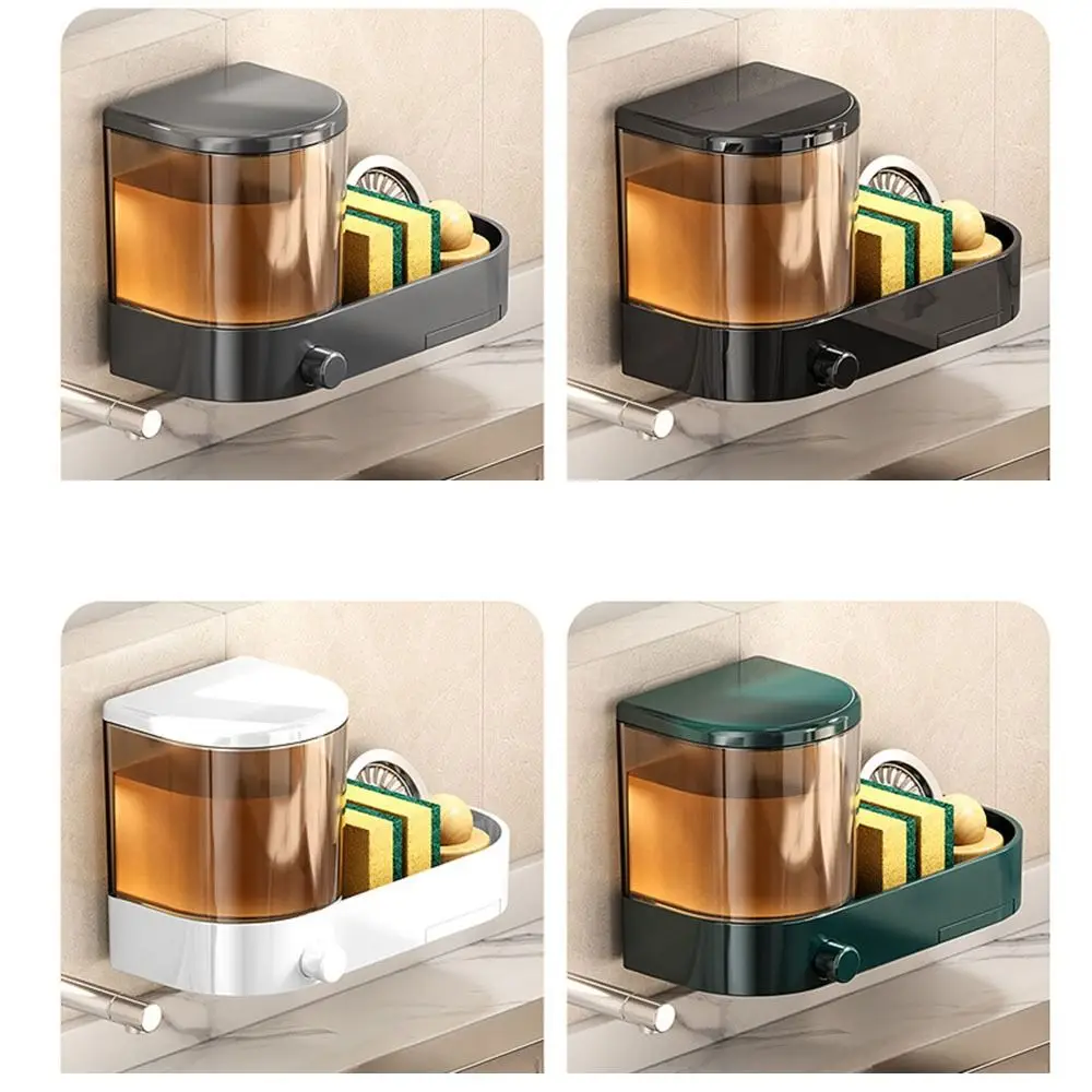 with Drain Tray Wall Mounted Soap Dispenser Large Capacity with Sponges Holder Dishwashing Liquid Holder Space Saving Waterproof