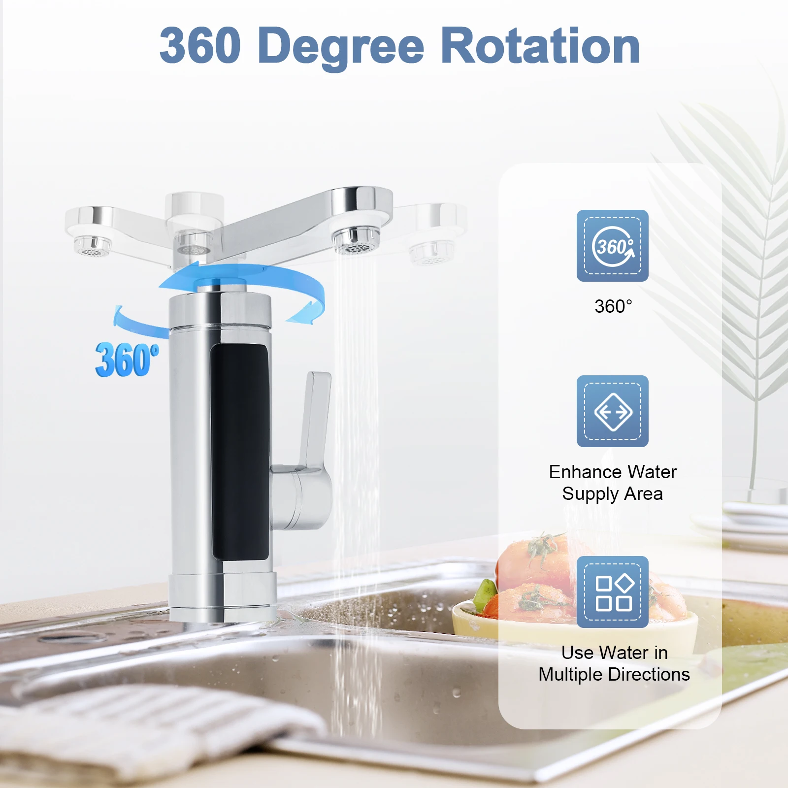 Kitchen Faucet with Instant Heating, 360° Rotatable Spout, 3000W Hot & Cold Water Tap, Stainless Steel & ABS
