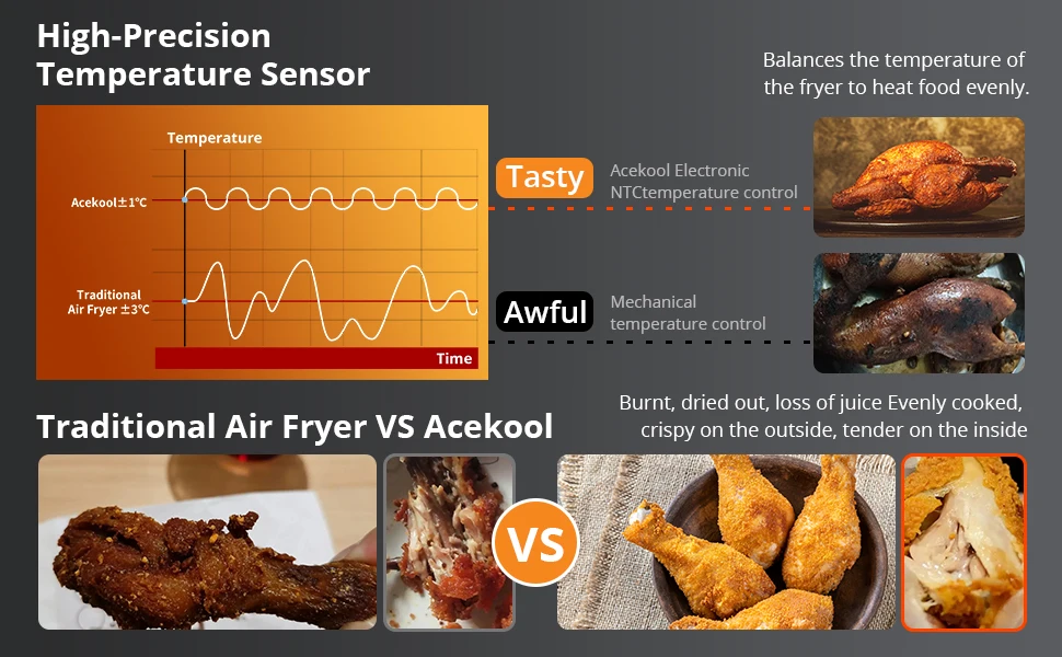 🍟Large Capacity: The large capacity of 8QT can hold up to 5 pounds of chicken, satisfying the need to satisfy a family of 5-7 people. Harness the power of fast air technology to achieve perfectly crispy frying results for every ingredient.