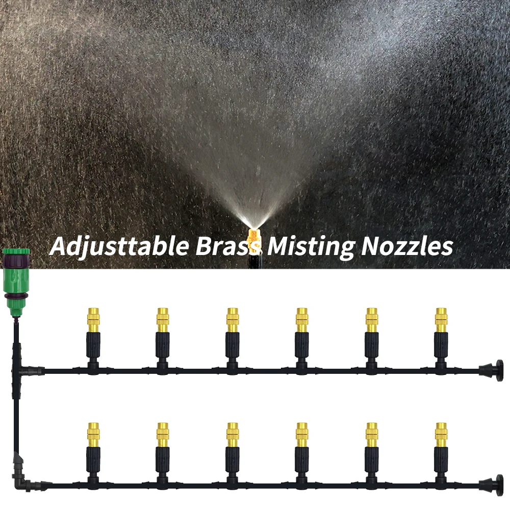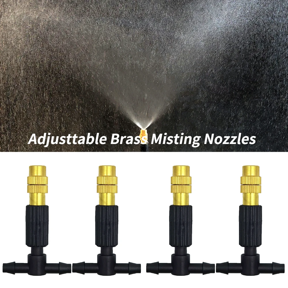 WUJIE 5M-30M Garden Irrigation Outdoor Misting Cooling System Watering 1/4'' Brass Atomizer Nozzles 4/7mm Hose Patio Greenhouse